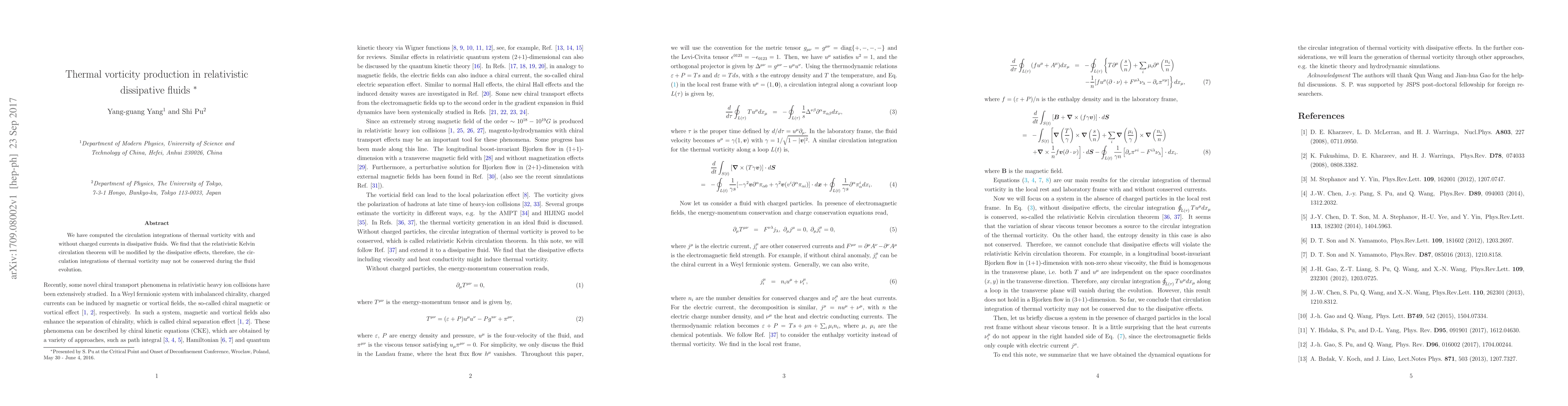 We have computed the circulation integrations of thermal vorticity with and without charged currents in dissipative fluids. We find that the relativistic Kelvin circulation theorem will be modified by the dissipative effects, therefore, the circulation integrations of thermal vorticity may not be conserved during the fluid evolution.