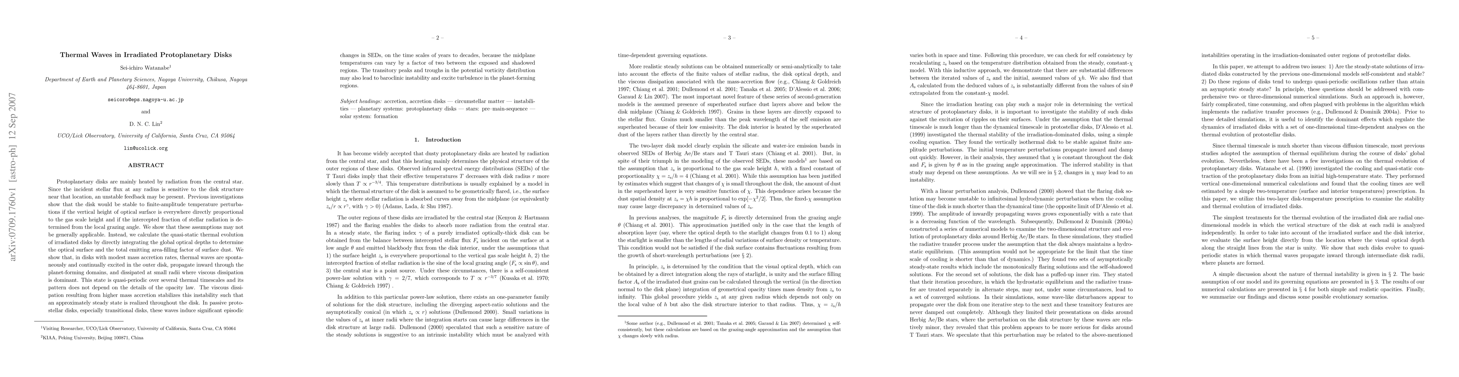Protoplanetary disks are mainly heated by radiation from the central star. Since the incident stellar flux at any radius is sensitive to the disk structure near that location, an unstable feedback may be present. Previous investigations show that the disk would be stable to finite-amplitude temperature perturbations if the vertical height of optical surface is everywhere directly proportional to the gas scale height and if the intercepted fraction of stellar radiation is determined from the local grazing angle. We show that these assumptions may not be generally applicable. Instead, we calculate the quasi-static thermal evolution of irradiated disks by directly integrating the global optical depths to determine the optical surface and the total emitting area-filling factor of surface dust. We show that, in disks with modest mass accretion rates, thermal waves are spontaneously and continually excited in the outer disk, propagate inward through the planet-forming domains, and dissipated at small radii where viscous dissipation is dominant. This state is quasi-periodic over several thermal timescales and its pattern does not depend on the details of the opacity law. The viscous dissipation resulting from higher mass accretion stabilizes this instability such that an approximately steady state is realized throughout the disk. In passive protostellar disks, especially transitional disks, these waves induce significant episodic changes in SEDs, on the time scales of years to decades, because the midplane temperatures can vary by a factor of two between the exposed and shadowed regions. The transitory peaks and troughs in the potential vorticity distribution may also lead to baroclinic instability and excite turbulence in theplanet-forming regions.