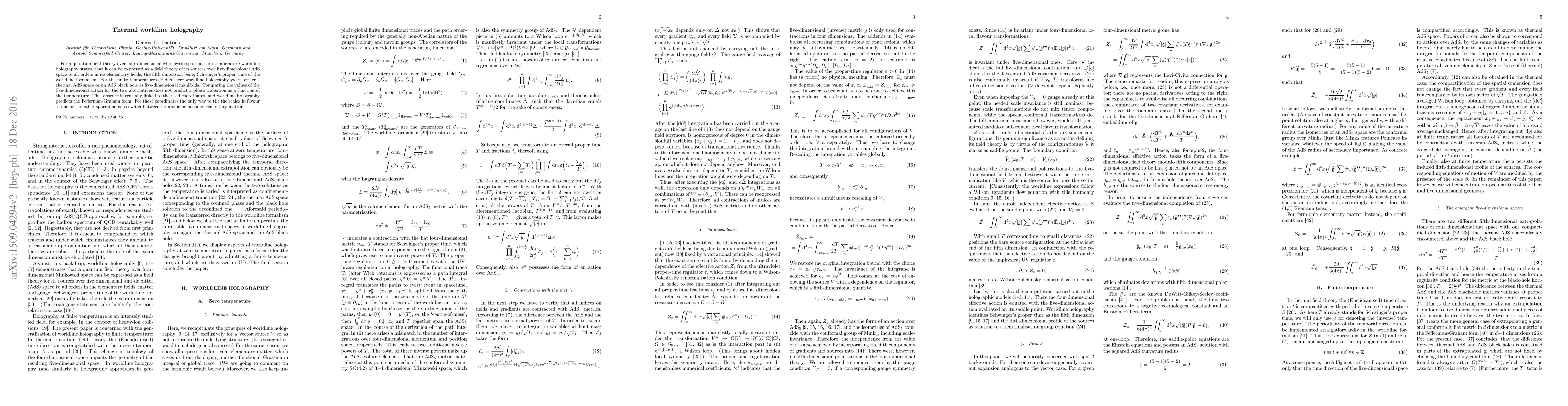 Title: Thermal worldline holography Summary: This paper explores worldline holography for quantum field theories at finite temperatures, showing that it can be reformulated in five-dimensional AdS space. It finds no temperature-induced phase transition, attributing the result to the choice of coordinates and predicting the Fefferman-Graham form.