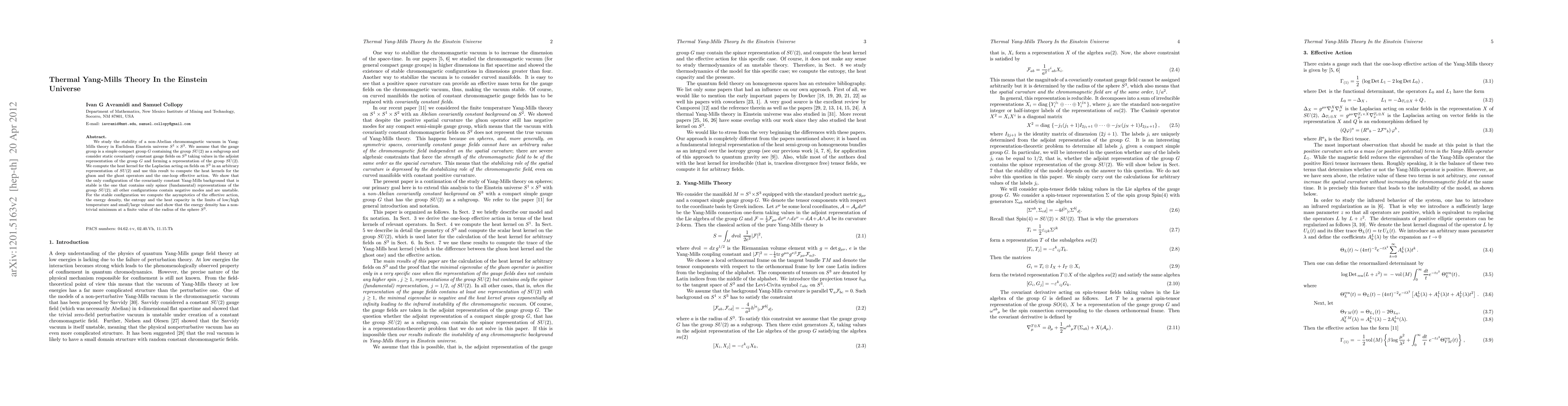 We study the stability of a non-Abelian chromomagnetic vacuum in Yang-Mills theory in Euclidean Einstein universe $S^1\times S^3$. We assume that the gauge group is a simple compact group $G$ containing the group SU(2) as a subgroup and consider static covariantly constant gauge fields on $S^3$ taking values in the adjoint representation of the group $G$ and forming a representation of the group $SU(2)$. We compute the heat kernel for the Laplacian acting on fields on $S^3$ in an arbitrary representation of SU(2) and use this result to compute the heat kernels for the gluon and the ghost operators and the one-loop effective action. We show that the only configuration of the covariantly constant Yang-Mills background that is stable is the one that contains only spinor (fundamental) representations of the group SU(2); all other configurations contain negative modes and are unstable. For the stable configuration we compute the asymptotics of the effective action, the energy density, the entropy and the heat capacity in the limits of low/high temperature and small/large volume and show that the energy density has a non-trivial minimum at a finite value of the radius of the sphere $S^3$.