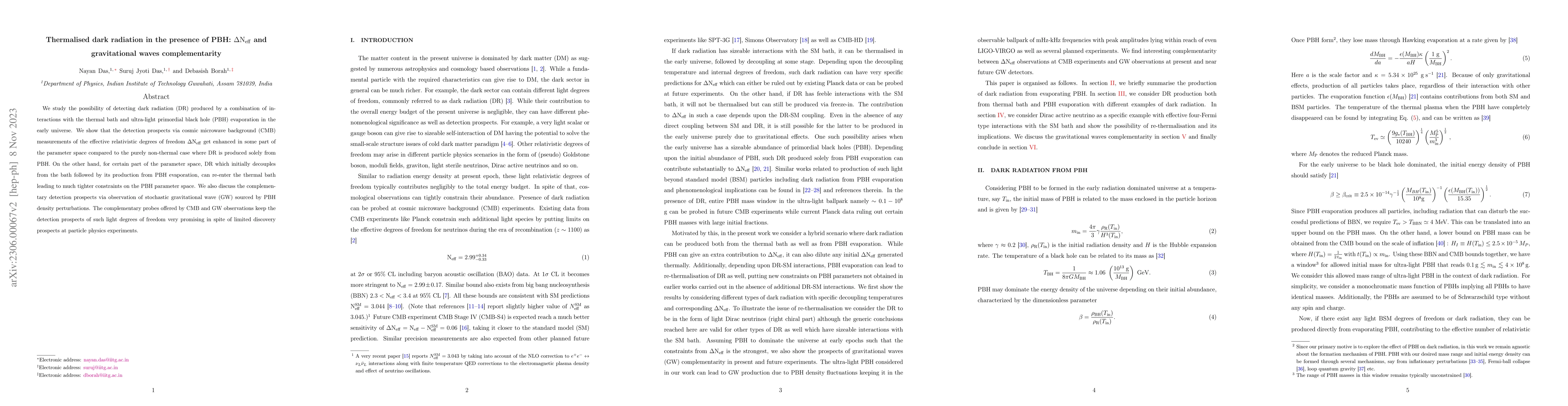 This paper explores the detection of dark radiation produced by interactions with the thermal bath and primordial black hole (PBH) evaporation, showing enhanced prospects via CMB measurements of effective relativistic degrees of freedom. It also discusses the complementary role of gravitational wave observations in constraining the PBH parameter space and enhancing detection prospects.