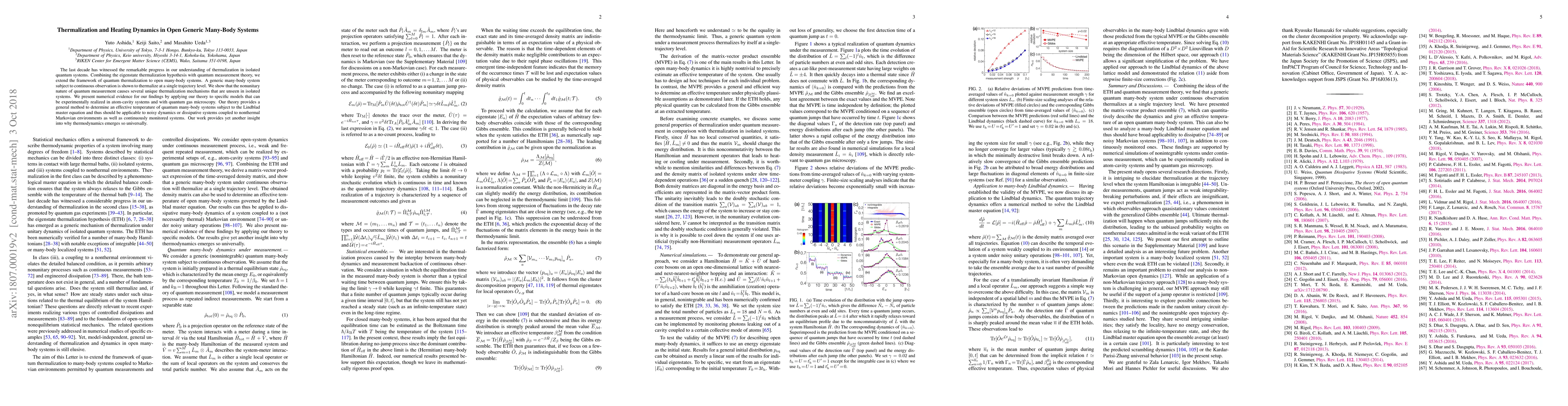This research extends the framework of quantum thermalization to open many-body systems, showing that continuous observation leads to thermalization through unique nonunitary mechanisms. It provides a method to determine effective temperatures in such systems, applicable to noisy dynamics and dissipative environments, offering insight into the universality of thermodynamics.