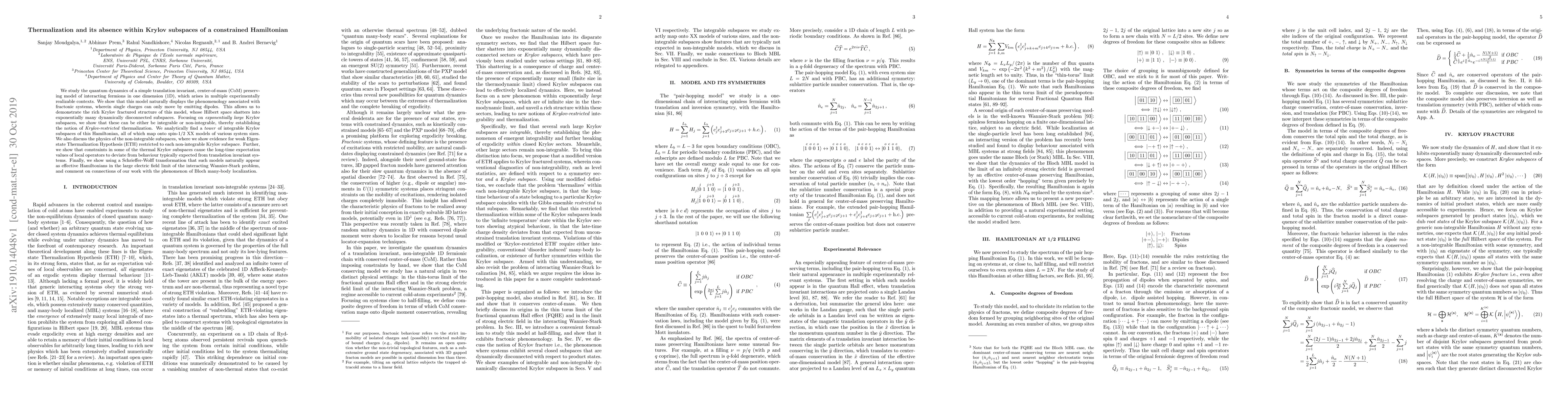 Researchers studied a quantum model of interacting fermions in 1D, showing that it exhibits fractonic behavior where charges can only move by emitting dipoles. They found a mix of integrable and non-integrable Krylov subspaces with unique thermalization properties.