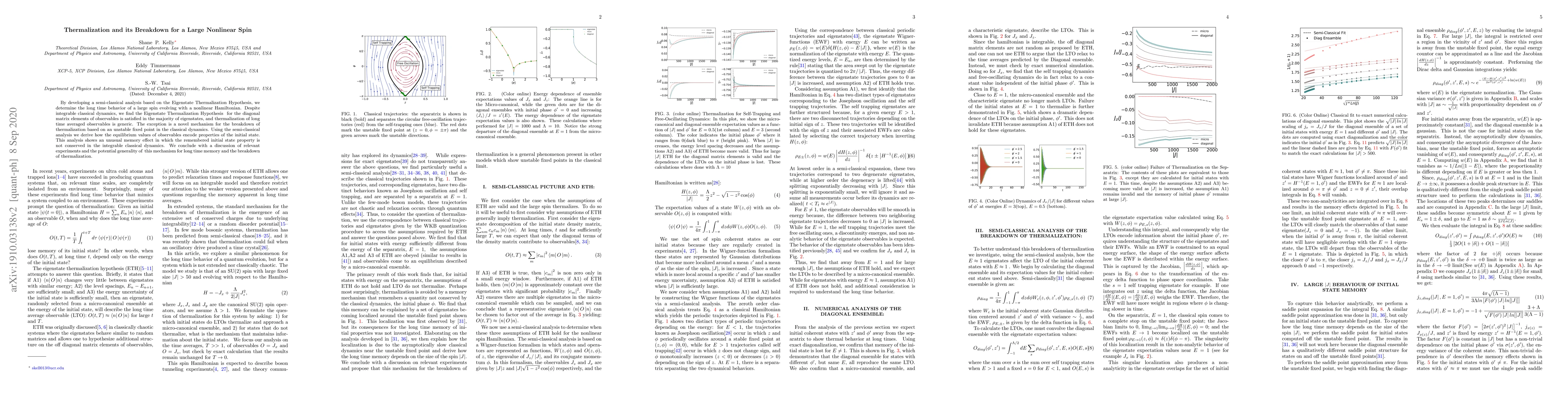 Researchers used a semi-classical analysis to study the long-time behavior of a large spin with a nonlinear Hamiltonian, finding that thermalization is broken by an unstable fixed point in classical dynamics. The study highlights a novel mechanism for memory effects and potential generality of this phenomenon.