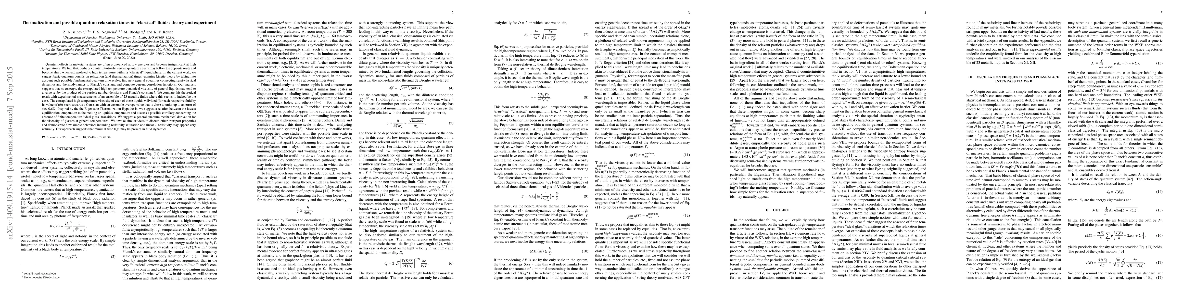 Quantum effects in material systems are often pronounced at low energies and become insignificant at high temperatures. We find that, perhaps counterintuitively, certain quantum effects may follow the opposite route and become sharp when extrapolated to high temperature within a "classical" liquid phase. In the current work, we suggest basic quantum bounds on relaxation (and thermalization) times, examine kinetic theory by taking into account such possible fundamental quantum time scales, find new general equalities connecting semi-classical dynamics and thermodynamics to Planck's constant, and compute current correlation functions. Our analysis suggests that, on average, the extrapolated high temperature dynamical viscosity of general liquids may tend to a value set by the product of the particle number density ${\sf n}$ and Planck's constant $h$. We compare this theoretical result with experimental measurements of an ensemble of 23 metallic fluids where this seems to indeed be the case. The extrapolated high temperature viscosity of each of these liquids $\eta$ divided (for each respective fluid by its value of ${\sf n} h$) veers towards a Gaussian with an ensemble average value that is close to unity up to an error of size $0.6 \%$. Inspired by the Eigenstate Thermalization Hypothesis, we suggest a relation between the lowest equilibration temperature to the melting or liquidus temperature and discuss a possible corollary concerning the absence of finite temperature "ideal glass" transitions. We suggest a general quantum mechanical derivation for the viscosity of glasses at general temperatures. We invoke similar ideas to discuss other transport properties and demonstrate how simple behaviors including resistivity saturation and linear $T$ resistivity may appear very naturally. Our approach suggests that minimal time lags may be present in fluid dynamics.