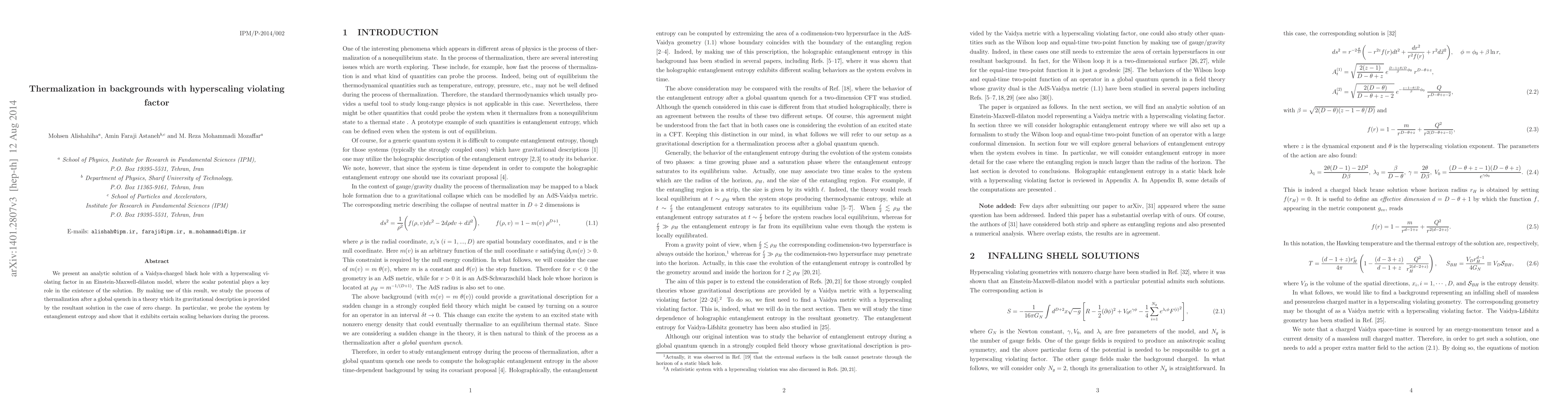 This paper presents an analytic solution for a Vaidya-charged black hole with a hyperscaling violating factor in an Einstein-Maxwell-dilaton model, and uses this solution to study thermalization after a global quench, finding specific scaling behaviors in the entanglement entropy.