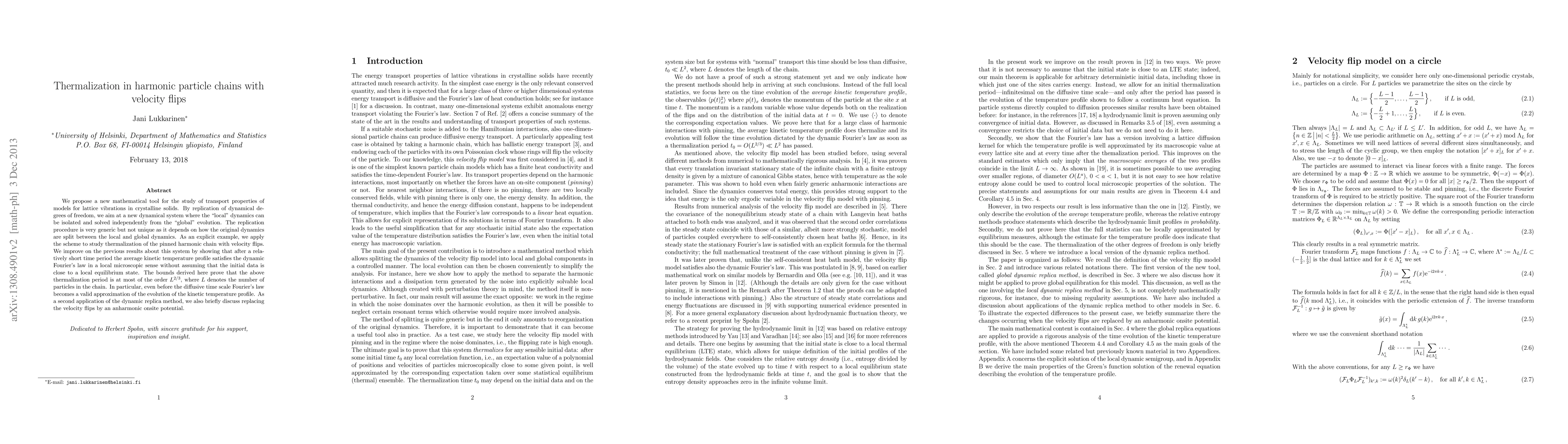 We propose a new mathematical tool for the study of transport properties of models for lattice vibrations in crystalline solids. By replication of dynamical degrees of freedom, we aim at a new dynamical system where the "local" dynamics can be isolated and solved independently from the "global" evolution. The replication procedure is very generic but not unique as it depends on how the original dynamics are split between the local and global dynamics. As an explicit example, we apply the scheme to study thermalization of the pinned harmonic chain with velocity flips. We improve on the previous results about this system by showing that after a relatively short time period the average kinetic temperature profile satisfies the dynamic Fourier's law in a local microscopic sense without assuming that the initial data is close to a local equilibrium state. The bounds derived here prove that the above thermalization period is at most of the order L^(2/3), where L denotes the number of particles in the chain. In particular, even before the diffusive time scale Fourier's law becomes a valid approximation of the evolution of the kinetic temperature profile. As a second application of the dynamic replica method, we also briefly discuss replacing the velocity flips by an anharmonic onsite potential.