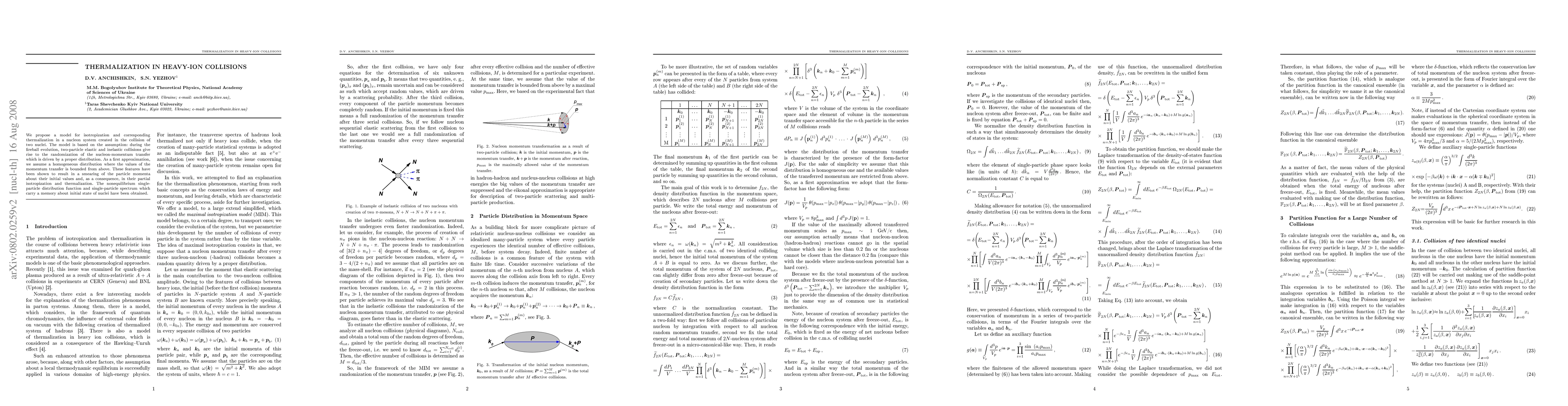 Researchers propose a model for thermalization in heavy-ion collisions, suggesting that random momentum transfer during collisions leads to isotropization and thermalization of nucleons. They calculate the nonequilibrium single-particle distribution function and spectrum, which capture the memory of initial nuclear states.