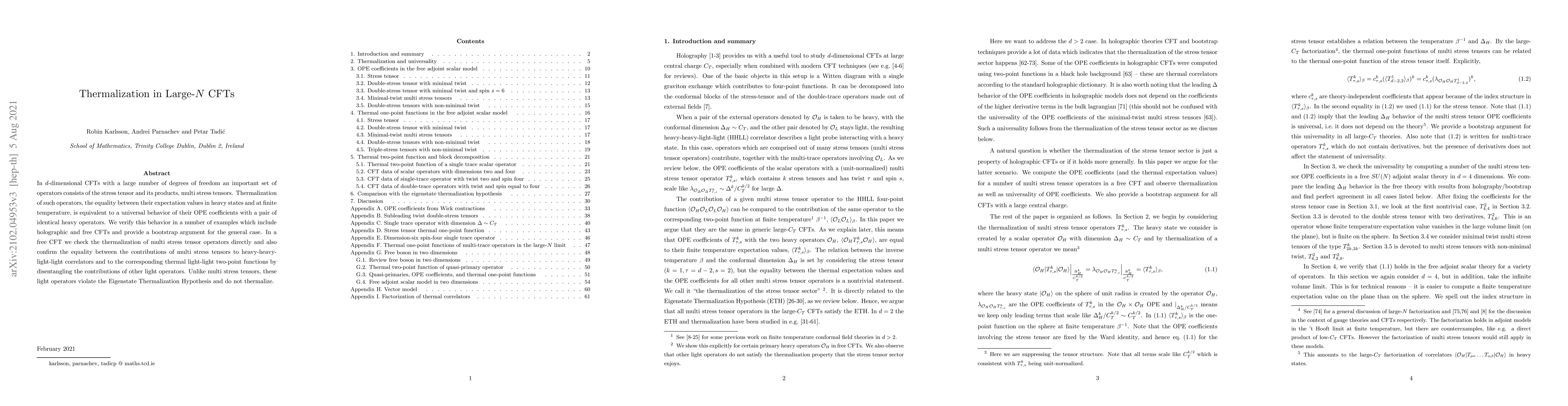 This paper investigates thermalization in large-N conformal field theories (CFTs), focusing on multi stress tensors and their products. It demonstrates that thermalization of these operators is linked to universal behavior in their OPE coefficients, verified through examples including holographic and free CFTs. The study confirms the thermalization of multi stress tensors in free CFTs, contrasting with non-thermalizing light operators.
