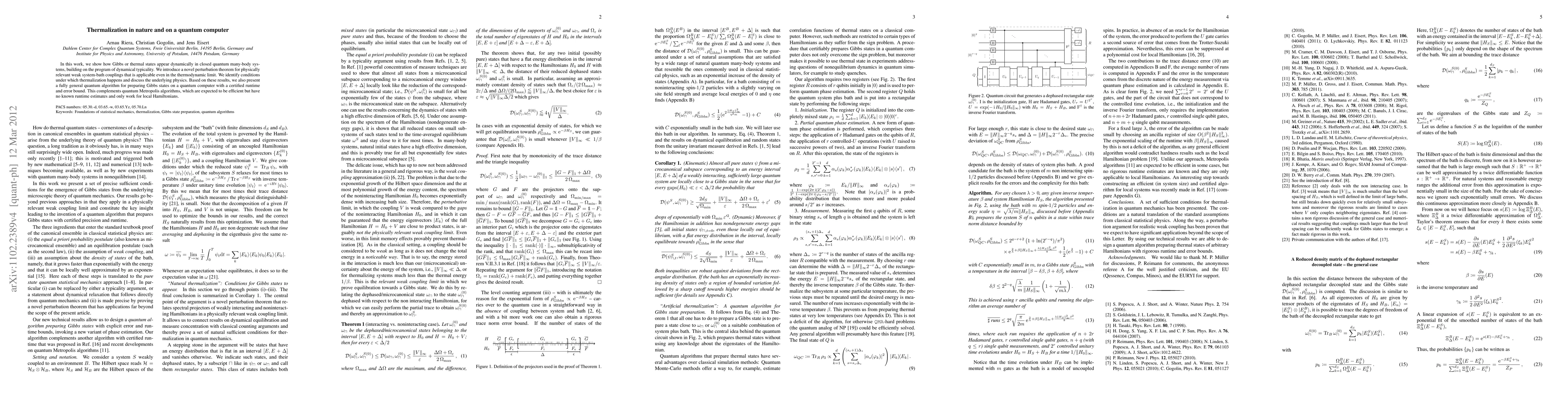 Researchers show how thermal states naturally appear in quantum systems and develop a new algorithm to prepare these states on a quantum computer with guaranteed runtime and error bounds.