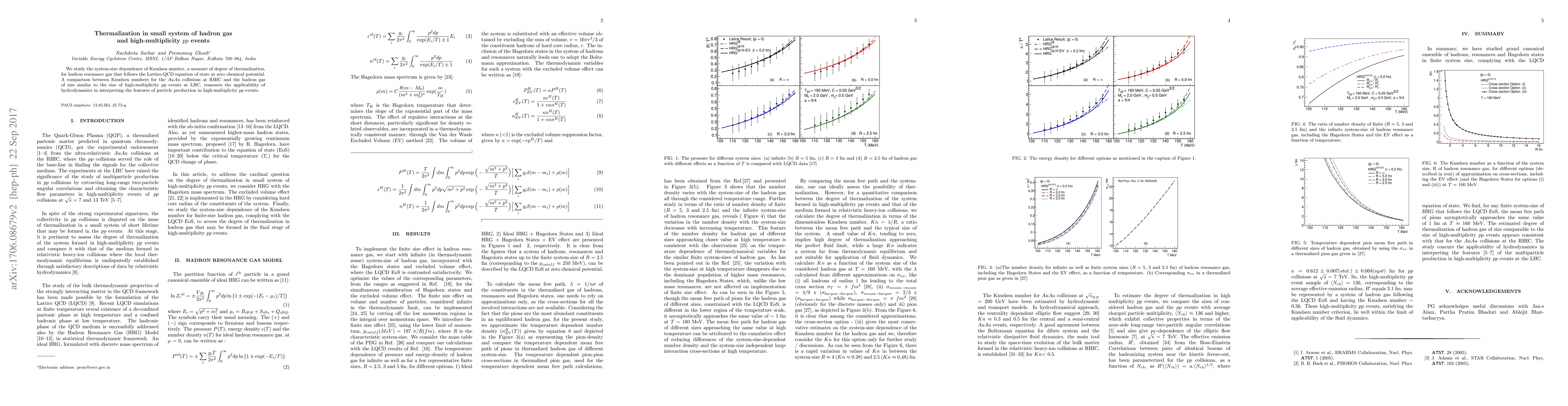 We study the system-size dependence of Knudsen number, a measure of degree of thermalization, for hadron resonance gas that follows the Lattice-QCD equation of state at zero chemical potential. A comparison between Knudsen numbers for the AuAu collisions at RHIC and the hadron gas of size similar to the size of high-multiplicity pp events at LHC, reassures the applicability of hydrodynamics in interpreting the features of particle production in high-multiplicity pp events.