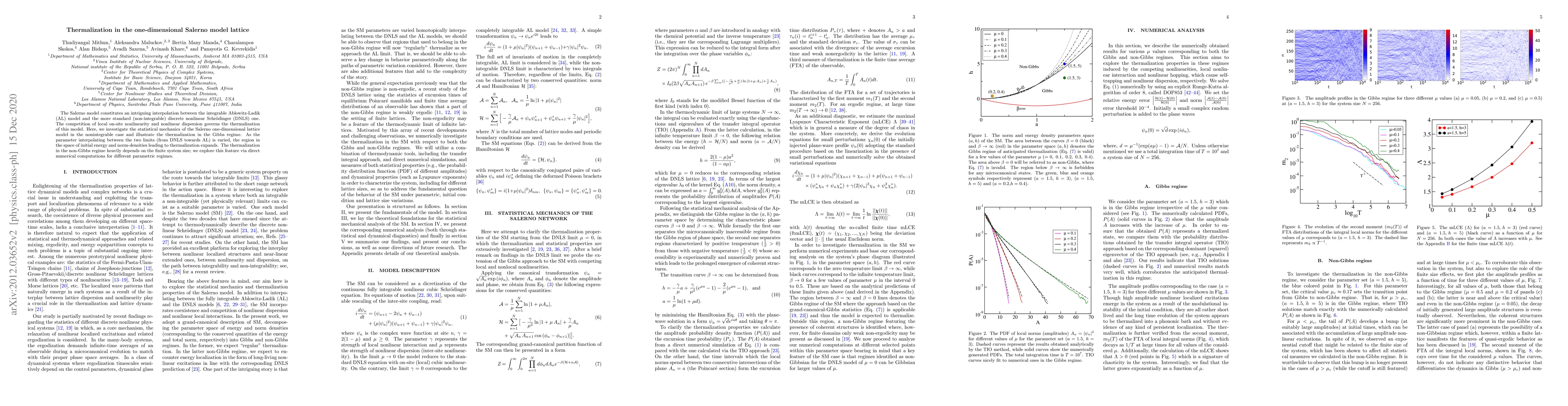 The Salerno model constitutes an intriguing interpolation between the integrable Ablowitz-Ladik (AL) model and the more standard (non-integrable) discrete nonlinear Schr{\"o}dinger (DNLS) one. The competition of local on-site nonlinearity and nonlinear dispersion governs the thermalization of this model. Here, we investigate the statistical mechanics of the Salerno one-dimensional lattice model in the nonintegrable case and illustrate the thermalization in the Gibbs regime. As the parameter interpolating between the two limits (from DNLS towards AL) is varied, the region in the space of initial energy and norm-densities leading to thermalization expands. The thermalization in the non-Gibbs regime heavily depends on the finite system size; we explore this feature via direct numerical computations for different parametric regimes.