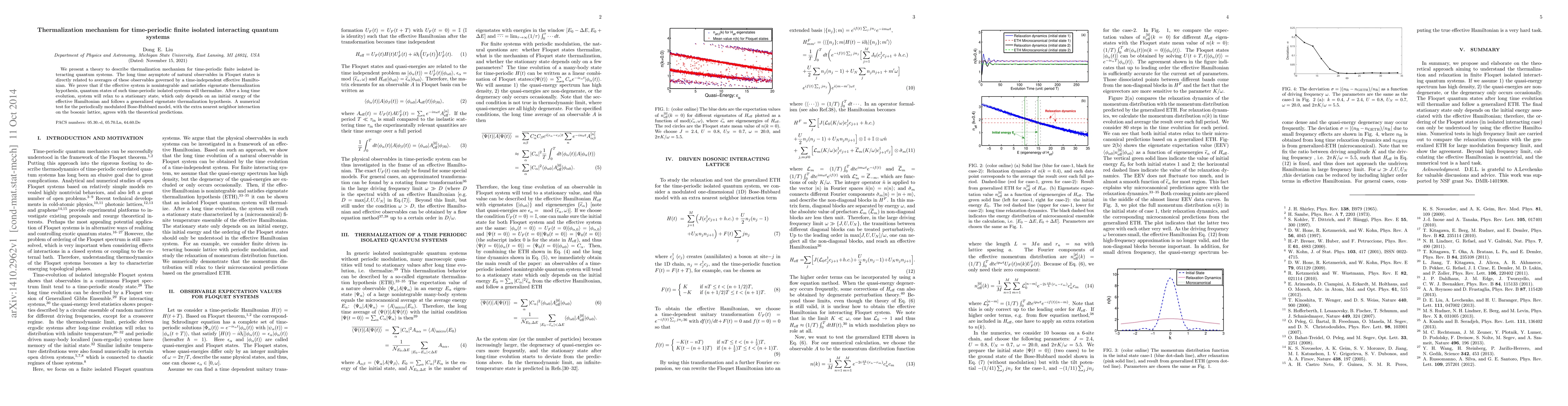 This paper develops a theoretical framework for thermalization in time-periodic finite isolated quantum systems, proving that nonintegrable systems with eigenstate thermalization hypothesis will reach a stationary state based on the initial energy, supported by numerical tests on a modified Bose-Hubbard model.