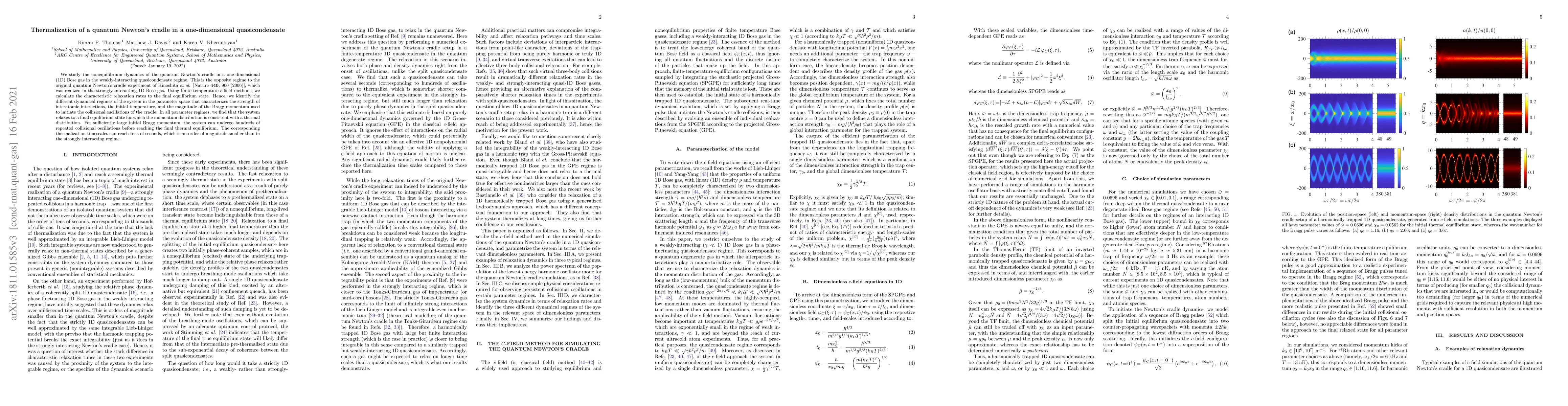 We study the nonequilibrium dynamics of the quantum Newton's cradle in a one-dimensional (1D) Bose gas in the weakly-interacting quasicondensate regime. This is the opposite regime to the original quantum Newton's cradle experiment of Kinoshita et al. [Nature 440, 900 (2006)], which was realized in the strongly interacting 1D Bose gas. Using finite temperature c-field methods, we calculate the characteristic relaxation rates to the final equilibrium state. Hence, we identify the different dynamical regimes of the system in the parameter space that characterizes the strength of interatomic interactions, the initial temperature, and the magnitude of the Bragg momentum used to initiate the collisional oscillations of the cradle. In all parameter regimes, we find that the system relaxes to a final equilibrium state for which the momentum distribution is consistent with a thermal distribution. For sufficiently large initial Bragg momentum, the system can undergo hundreds of repeated collisional oscillations before reaching the final thermal equilibrium. The corresponding thermalization timescales can reach tens of seconds, which is an order of magnitude smaller than in the strongly interacting regime.