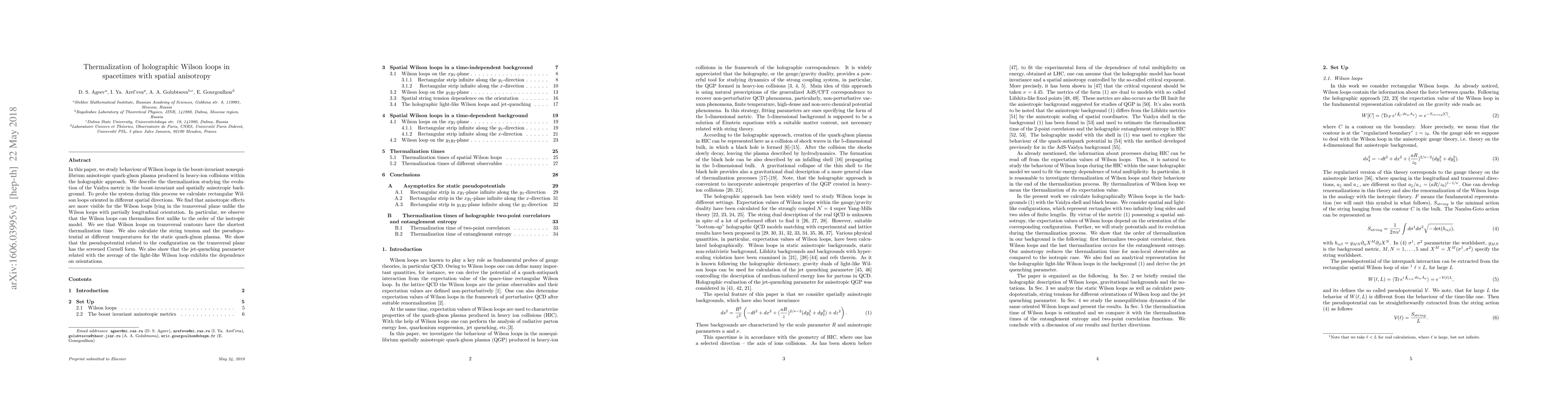 This paper investigates the thermalization dynamics of Wilson loops in anisotropic quark-gluon plasmas using a holographic approach, finding that transversal Wilson loops thermalize faster than longitudinal ones and that the pseudopotential for transversal configurations follows a screened Cornell form.