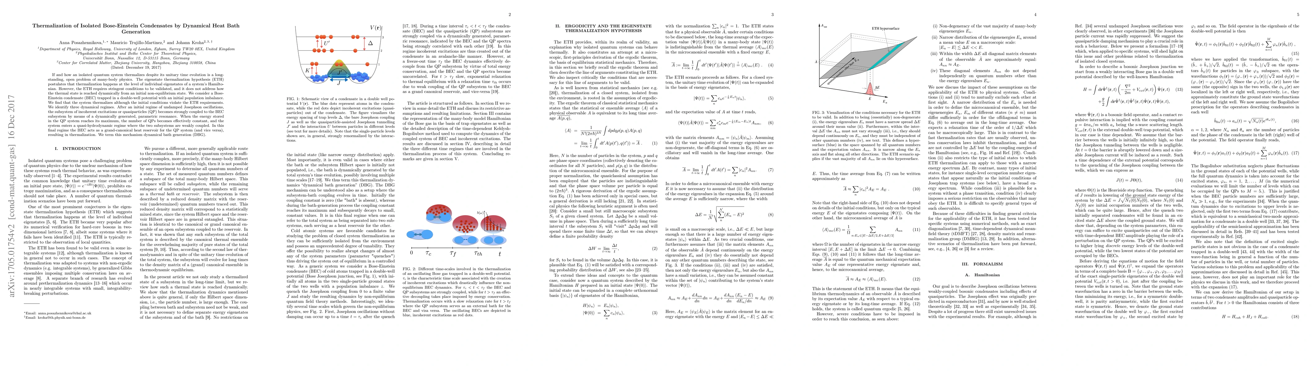 This paper investigates the thermalization of an isolated Bose-Einstein condensate (BEC) in a double-well potential, demonstrating that it thermalizes despite initial conditions violating the eigenstate thermalization hypothesis (ETH). The study identifies three dynamical regimes leading to thermalization through a mechanism termed dynamical bath generation (DBG), where the BEC acts as a heat reservoir for quasiparticles.