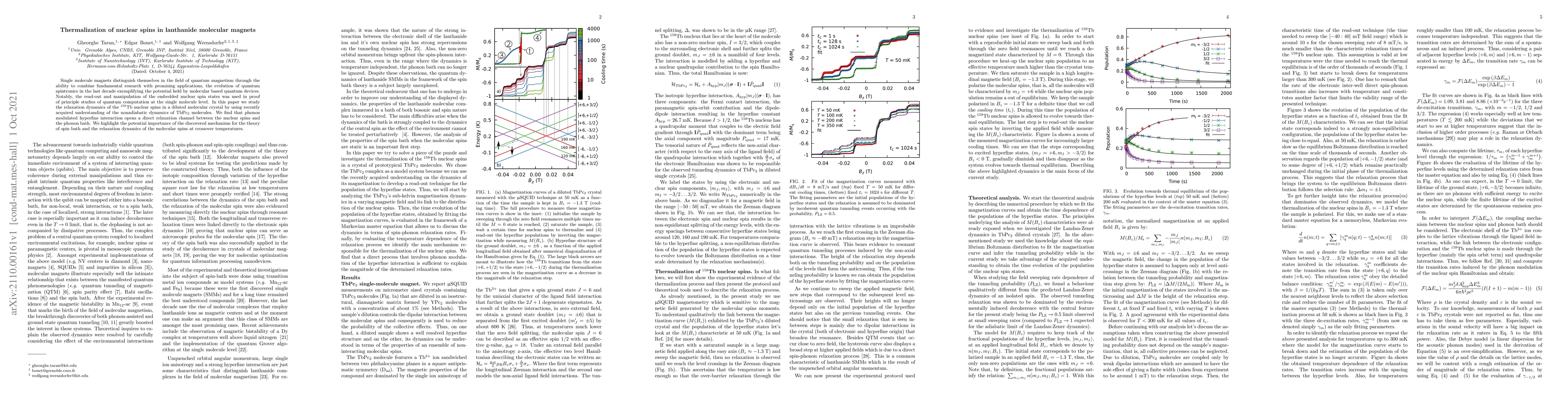 This paper investigates the relaxation dynamics of $^{159}$Tb nuclear spins in lanthanide molecular magnets, revealing that phonon-modulated hyperfine interactions create a direct relaxation channel between nuclear spins and the phonon bath. This discovery has implications for understanding spin bath interactions and the relaxation dynamics of molecular spins at crossover temperatures.