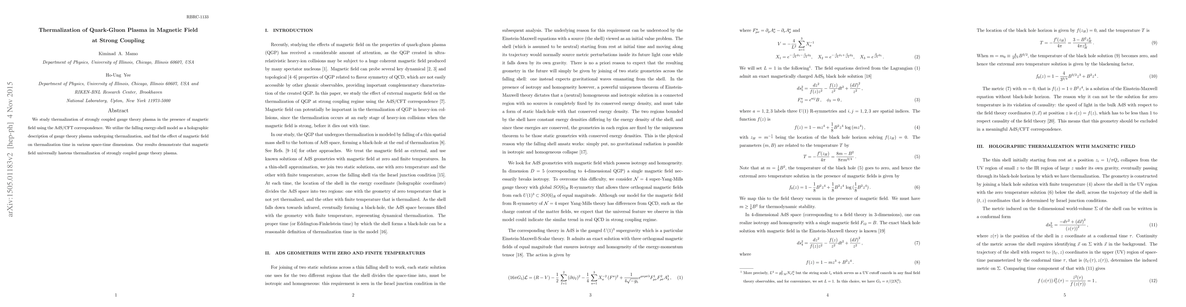 This paper investigates the thermalization of strongly coupled quark-gluon plasma in a magnetic field using the AdS/CFT correspondence and the falling energy-shell model, revealing that magnetic fields universally accelerate thermalization across different space-time dimensions.
