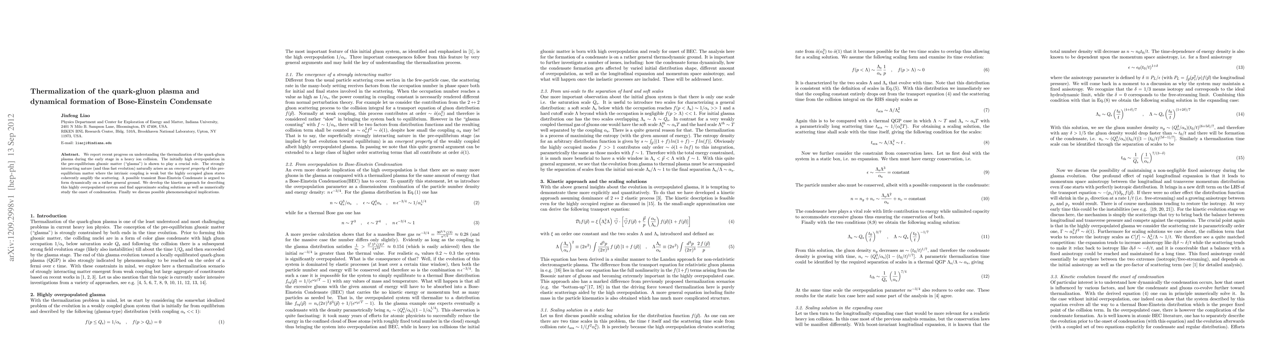 A new method was proposed to study the thermalization of quark-gluon plasma using a kinetic approach.