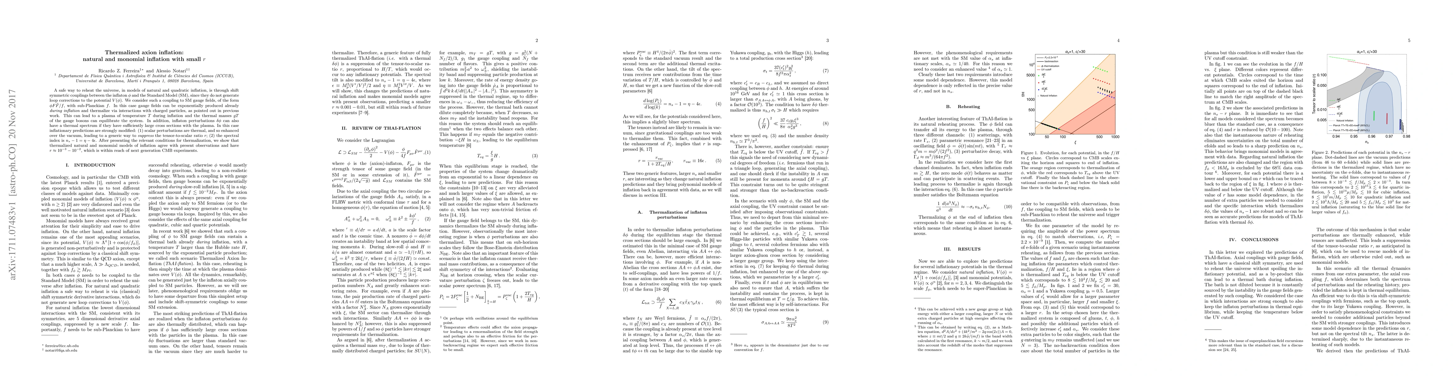 A safe way to reheat the universe, in models of natural and quadratic inflation, is through shift symmetric couplings between the inflaton $\phi$ and the Standard Model (SM), since they do not generate loop corrections to the potential $V(\phi)$. We consider such a coupling to SM gauge fields, of the form $\phi F\tilde{F}/f$, with sub-Planckian $f$. In this case gauge fields can be exponentially produced already {\it during inflation} and thermalize via interactions with charged particles, as pointed out in previous work. This can lead to a plasma of temperature $T$ during inflation and the thermal masses $gT$ of the gauge bosons can equilibrate the system. In addition, inflaton perturbations $\delta \phi$ can also have a thermal spectrum if they have sufficiently large cross sections with the plasma. In this case inflationary predictions are strongly modified: (1) scalar perturbations are thermal, and so enhanced over the vacuum, leading to a generic way to {\it suppress} the tensor-to-scalar ratio $r$; (2) the spectral index is $n_s-1=\eta-4\epsilon$. After presenting the relevant conditions for thermalization, we show that thermalized natural and monomial models of inflation agree with present observations and have $r\approx 10^{-3} - 10^{-2}$, which is within reach of next generation CMB experiments.