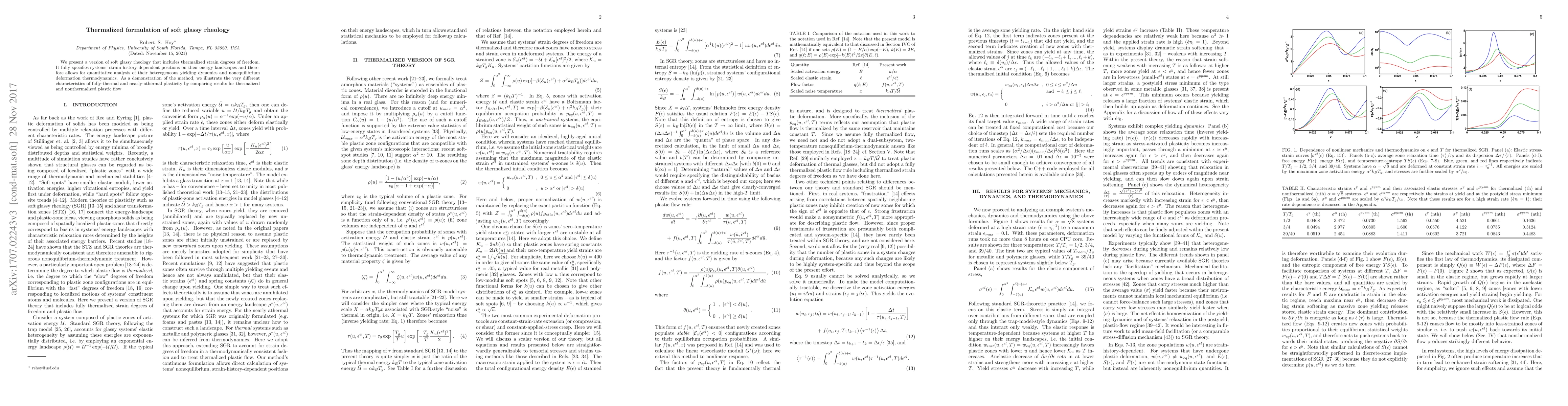 This paper introduces a thermalized version of soft glassy rheology, enabling detailed analysis of strain-history-dependent dynamics and nonequilibrium thermodynamics. It contrasts the distinct behaviors of fully-thermal and nearly-athermal plasticity through comparative studies of thermalized and nonthermalized plastic flow.