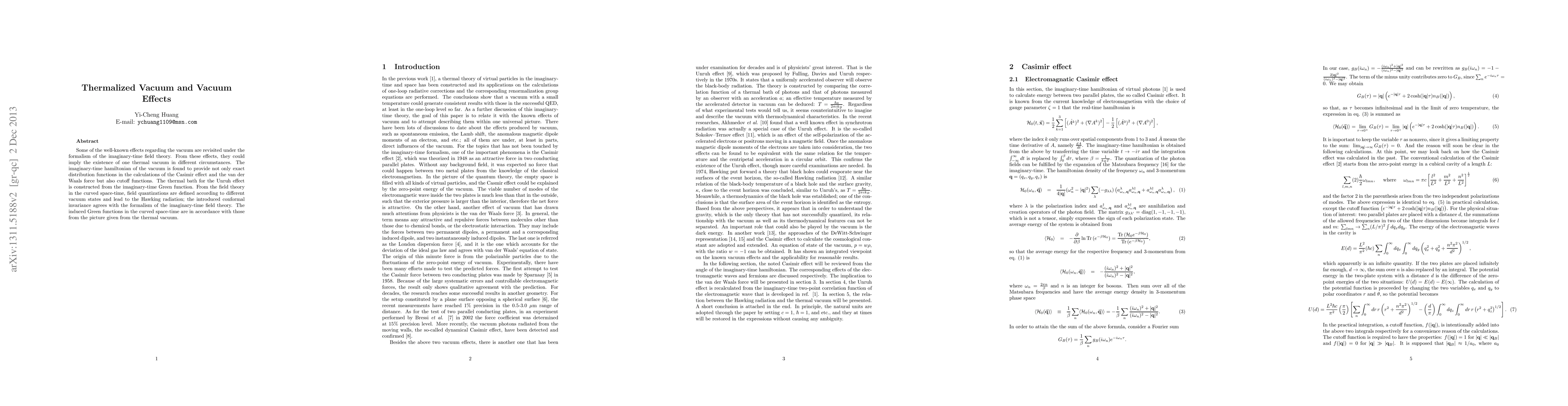 Researchers explore how thermalized vacuum concepts apply to various physical phenomena, including Casimir effect and Hawking radiation, using imaginary-time field theory as a framework.