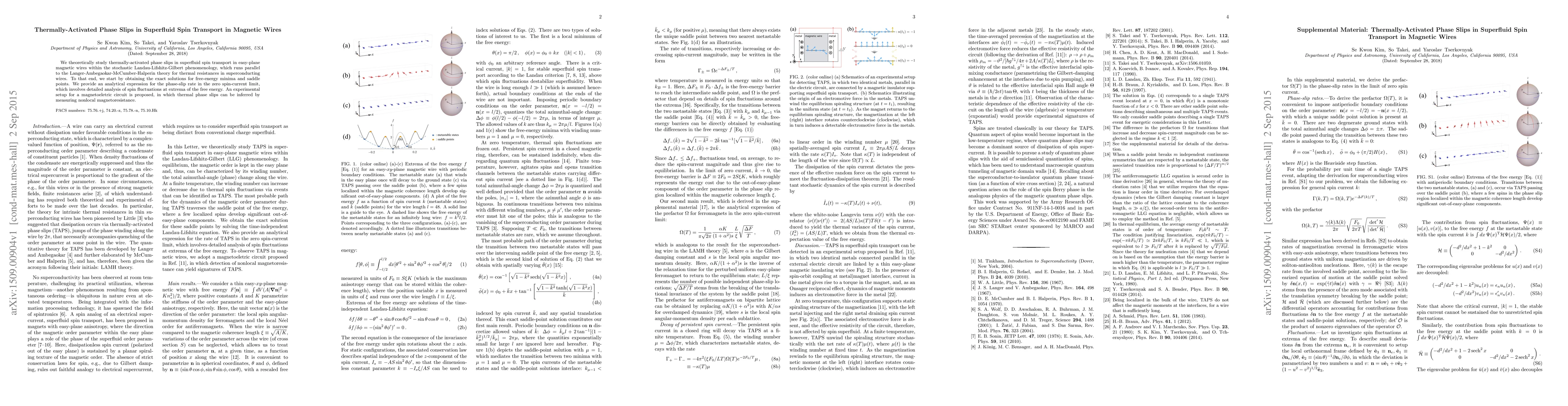 This paper theoretically investigates thermally-activated phase slips in superfluid spin transport in magnetic wires, using stochastic Landau-Lifshitz-Gilbert phenomenology. It proposes an analytical expression for the phase-slip rate and suggests an experimental setup involving magnetoelectric circuits to measure nonlocal magnetoresistance.