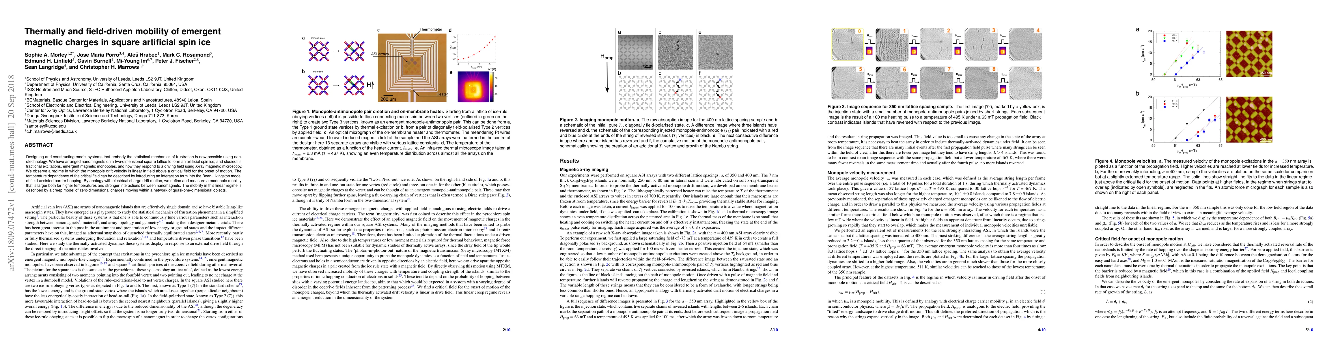 Researchers created a 2D artificial spin ice using nanomagnets and observed how emergent magnetic charges move in response to an applied field, finding that their velocity increases linearly with the field strength above a critical threshold. The movement of these charges is described by a creep model similar to electrical charge drift motion.