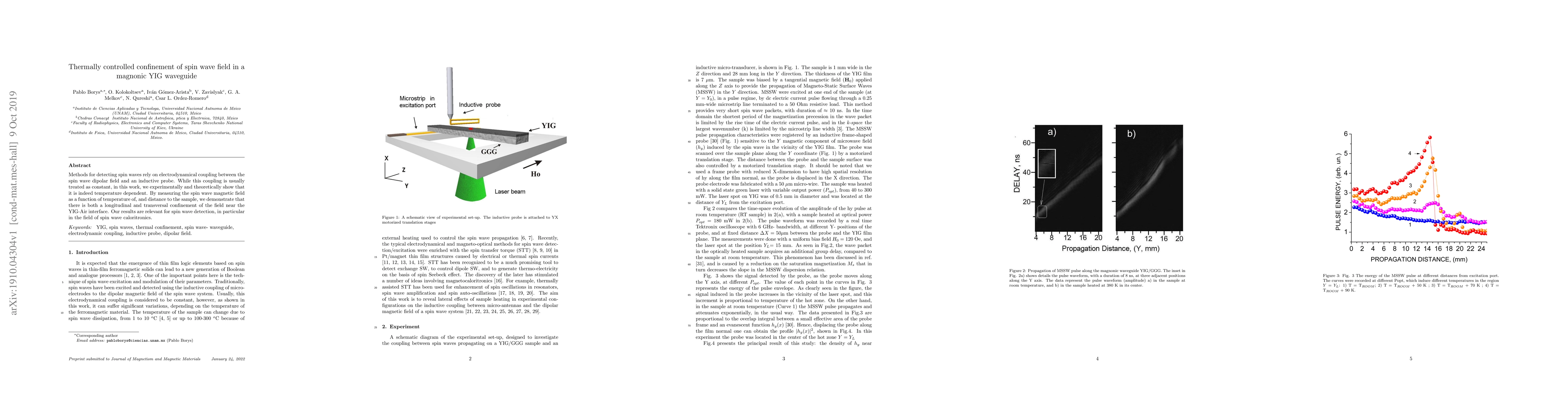 This paper investigates the temperature-dependent electrodynamical coupling of spin waves in a YIG waveguide, demonstrating both longitudinal and transversal confinement of the spin wave magnetic field near the YIG-Air interface. These findings enhance understanding of spin wave detection and have implications for spin wave caloritronics.