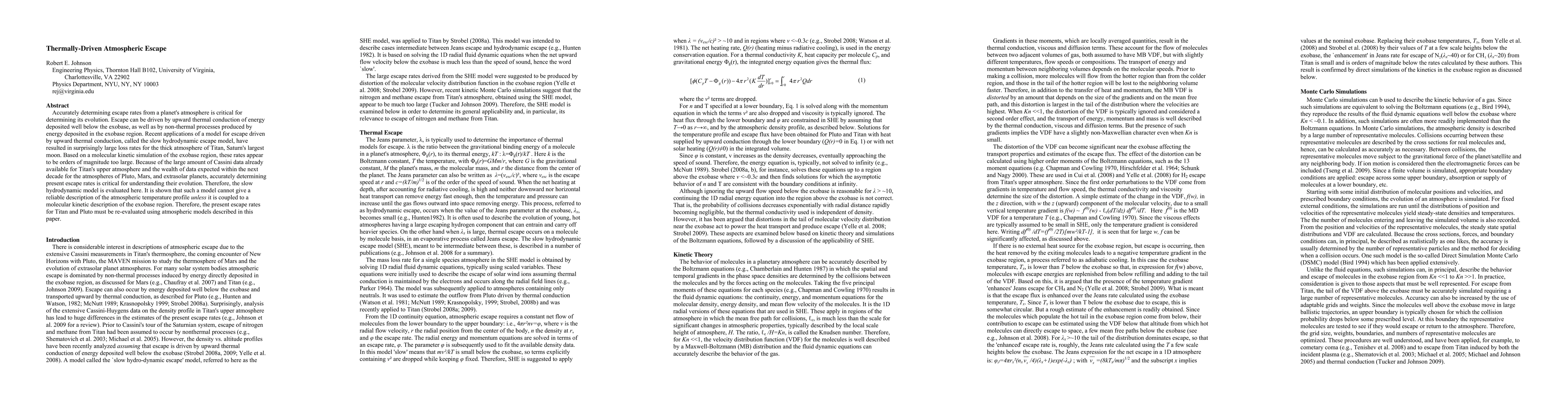 A research paper critiques a model for atmospheric escape rates, finding it inaccurate in predicting escape rates for Titan and Pluto. It proposes that the model should be coupled with molecular kinetic descriptions to achieve reliable results.
