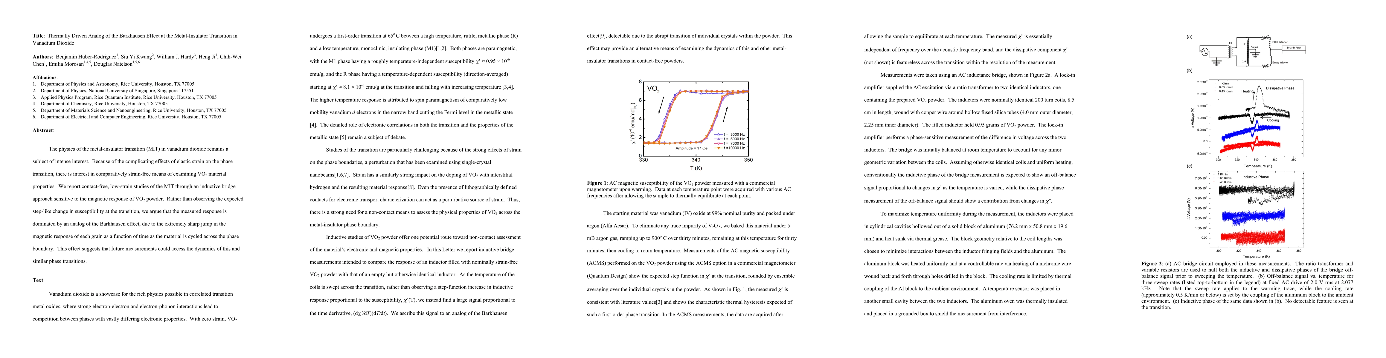 The physics of the metal-insulator transition (MIT) in vanadium dioxide remains a subject of intense interest. Because of the complicating effects of elastic strain on the phase transition, there is interest in comparatively strain-free means of examining VO2 material properties. We report contact-free, low-strain studies of the MIT through an inductive bridge approach sensitive to the magnetic response of VO2 powder. Rather than observing the expected step-like change in susceptibility at the transition, we argue that the measured response is dominated by an analog of the Barkhausen effect, due to the extremely sharp jump in the magnetic response of each grain as a function of time as the material is cycled across the phase boundary. This effect suggests that future measurements could access the dynamics of this and similar phase transitions.