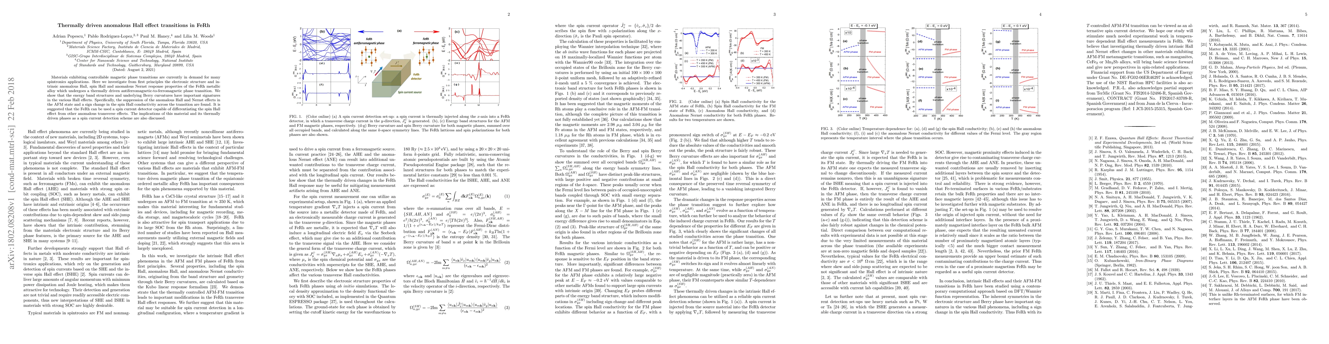 This study investigates the electronic structure and Hall effects in FeRh, which undergoes a thermally driven magnetic phase transition. The research reveals significant changes in the anomalous Hall and Nernst effects, suggesting FeRh's potential as a spin current detector that distinguishes the spin Hall effect from other transverse effects.