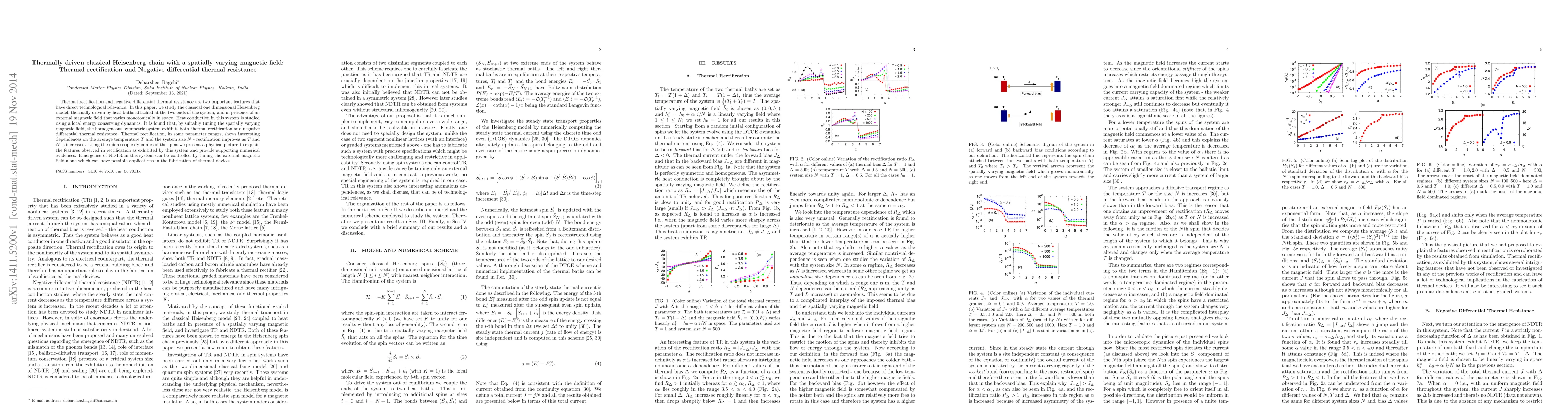 Thermal rectification and negative differential thermal resistance are two important features that have direct technological relevance. In this paper, we study the classical one dimensional Heisenberg model, thermally driven by heat baths attached at the two ends of the system, and in presence of an external magnetic field that varies monotonically in space. Heat conduction in this system is studied using a local energy conserving dynamics. It is found that, by suitably tuning the spatially varying magnetic field, the homogeneous symmetric system exhibits both thermal rectification and negative differential thermal resistance. Thermal rectification, in some parameter ranges, shows interesting dependences on the average temperature T and the system size N - rectification improves as T and N is increased. Using the microscopic dynamics of the spins we present a physical picture to explain the features observed in rectification as exhibited by this system and provide supporting numerical evidences. Emergence of NDTR in this system can be controlled by tuning the external magnetic field alone which can have possible applications in the fabrication of thermal devices.