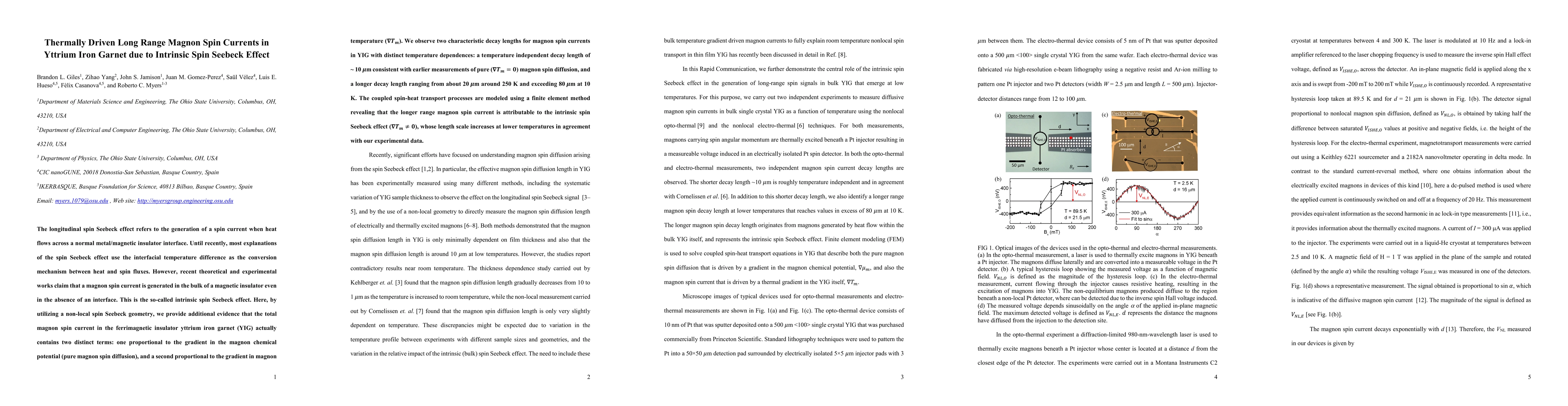 The longitudinal spin Seebeck effect refers to the generation of a spin current when heat flows across a normal metal/magnetic insulator interface. Until recently, most explanations of the spin Seebeck effect use the interfacial temperature difference as the conversion mechanism between heat and spin fluxes. However, recent theoretical and experimental works claim that a magnon spin current is generated in the bulk of a magnetic insulator even in the absence of an interface. This is the so-called intrinsic spin Seebeck effect. Here, by utilizing a non-local spin Seebeck geometry, we provide additional evidence that the total magnon spin current in the ferrimagnetic insulator yttrium iron garnet (YIG) actually contains two distinct terms: one proportional to the gradient in the magnon chemical potential (pure magnon spin diffusion), and a second proportional to the gradient in magnon temperature ($\nabla T_m$). We observe two characteristic decay lengths for magnon spin currents in YIG with distinct temperature dependences: a temperature independent decay length of ~ 10 ${\mu}$m consistent with earlier measurements of pure ($\nabla T_m = 0$) magnon spin diffusion, and a longer decay length ranging from about 20 ${\mu}$m around 250 K and exceeding 80 ${\mu}$m at 10 K. The coupled spin-heat transport processes are modeled using a finite element method revealing that the longer range magnon spin current is attributable to the intrinsic spin Seebeck effect ($\nabla T_m \neq 0$), whose length scale increases at lower temperatures in agreement with our experimental data.