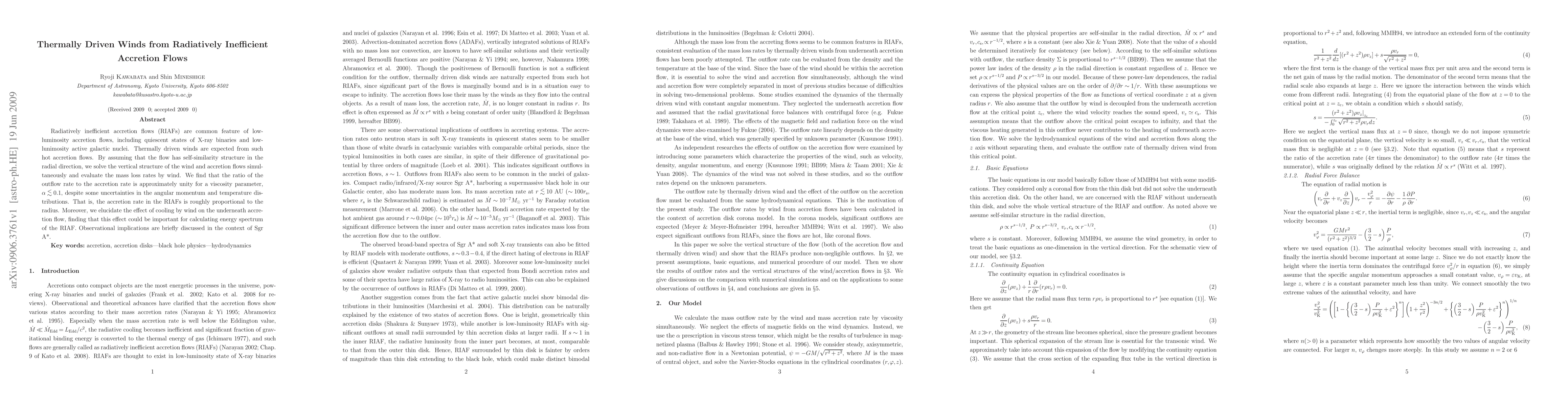 The paper presents an analytical model for thermally driven winds from RIAFs, providing a framework for understanding mass and energy transport in these systems.