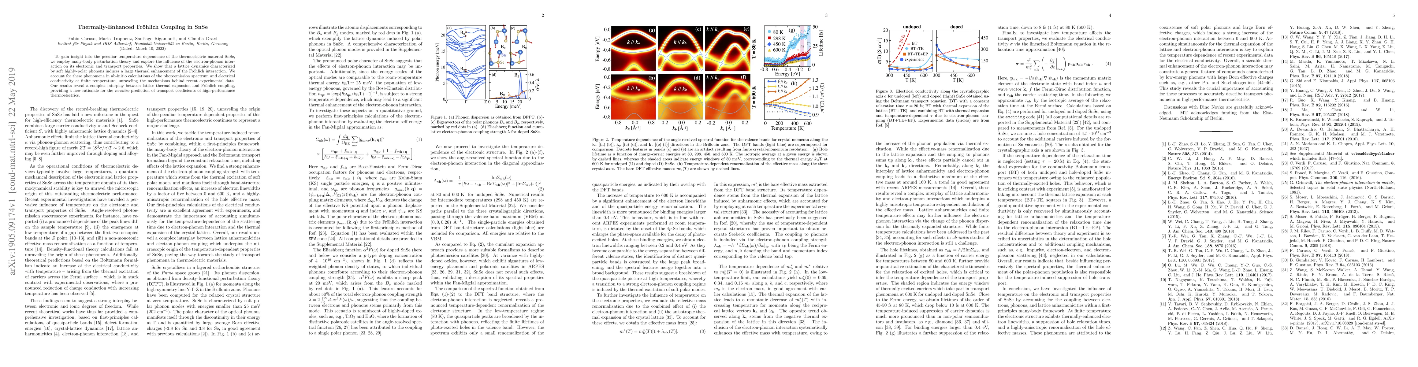 This study utilizes many-body perturbation theory to investigate SnSe's thermoelectric properties, demonstrating that soft, highly-polar phonons lead to significant thermal enhancement of Fr\"ohlich coupling. The research combines ab-initio calculations with experimental data to explain the complex relationship between lattice dynamics and thermoelectric transport.