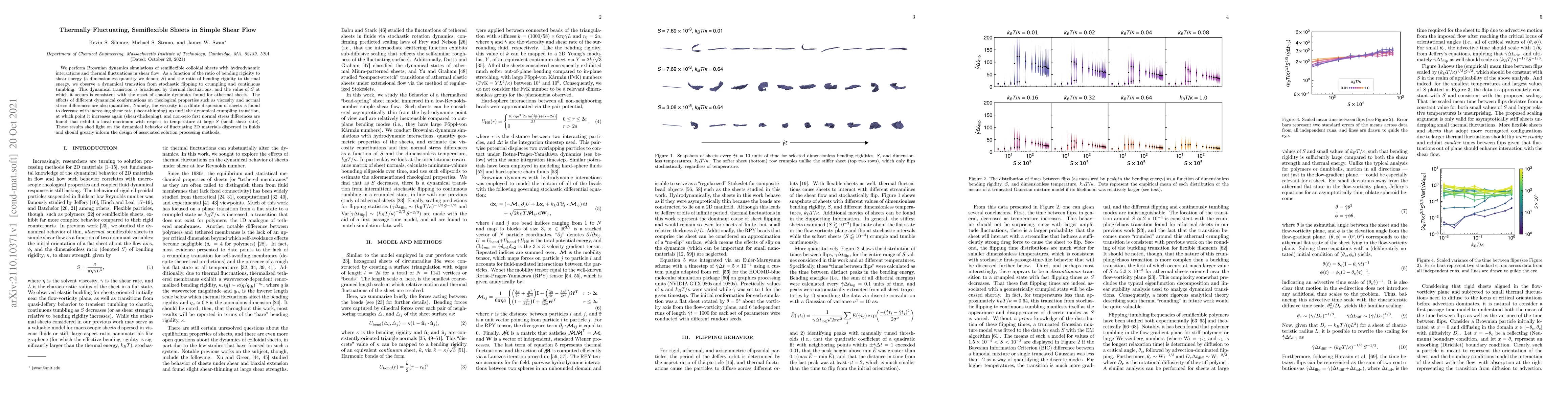 Researchers simulate semiflexible sheets in shear flow, finding a transition from random flipping to crumpling and continuous tumbling as the material's flexibility changes. This phenomenon affects viscosity and stress differences, with implications for designing solution processing methods for 2D materials.