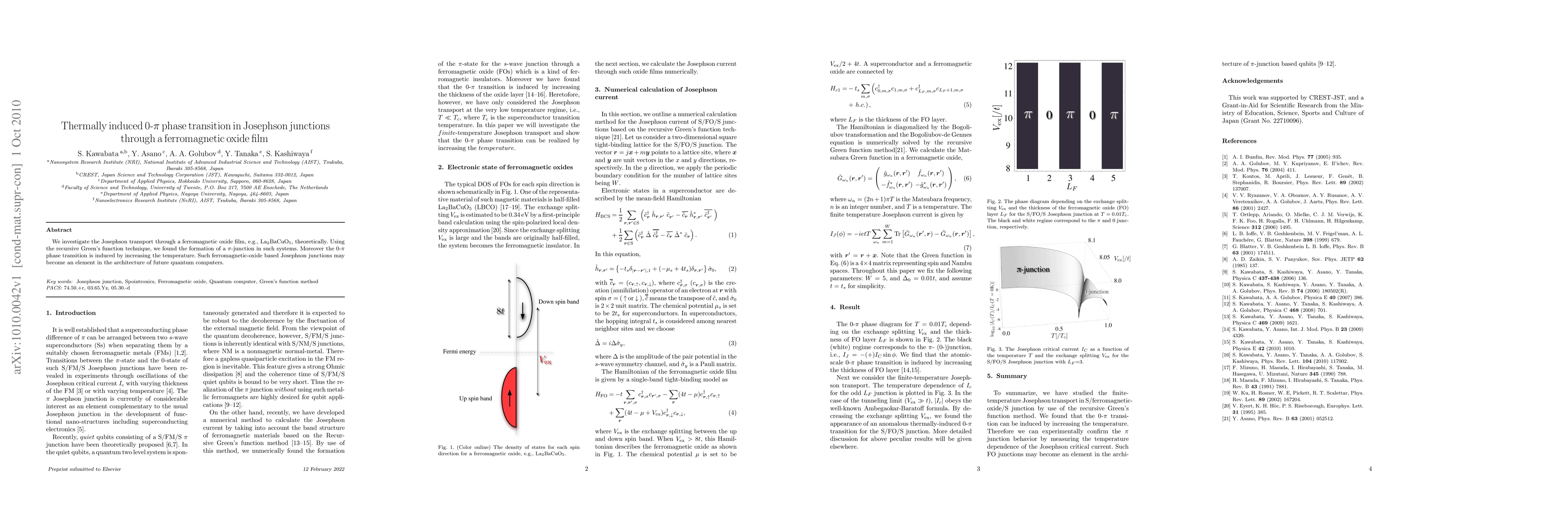Summary: The paper theoretically explores Josephson transport through ferromagnetic oxide films, revealing the formation of pi-junctions and a thermally induced 0-pi phase transition, suggesting potential applications in future quantum computing architectures.