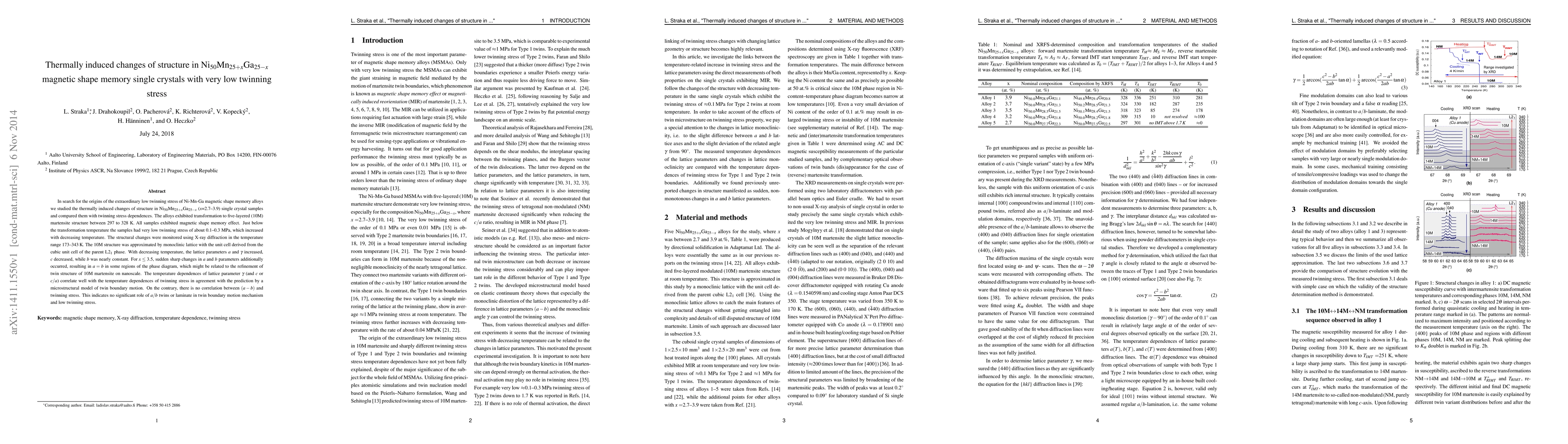 This study examines Ni-Mn-Ga magnetic shape memory alloys, finding that their low twinning stress originates from thermally induced structural changes. Using X-ray diffraction, researchers observed transformations to a five-layered martensite structure, correlating lattice parameter changes with twinning stress. The results suggest refinement of twin structure on a nanoscale contributes to the low twinning stress, while a/b twins play a minor role.