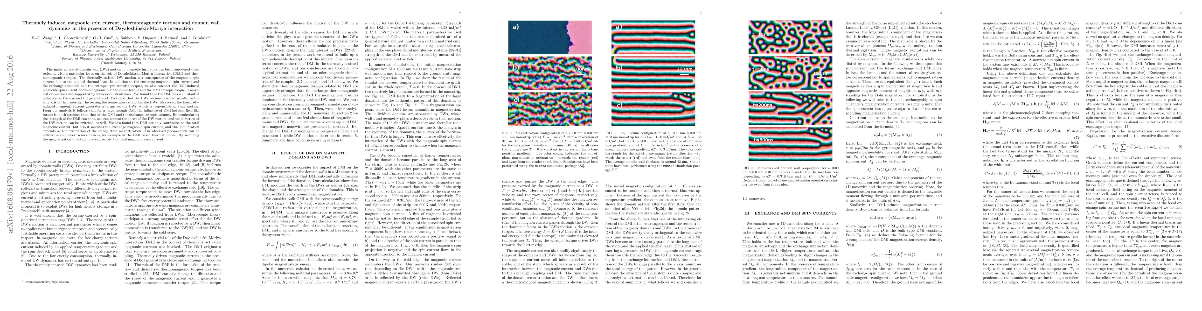 This paper explores thermally induced domain wall motion in magnetic insulators, emphasizing the impact of Dzyaloshinskii-Moriya Interaction (DMI) and thermomagnonic torques. The study reveals that DMI significantly influences domain wall geometry and orientation, while the magnonic spin current generated by thermal bias drives domain wall motion, suggesting potential applications in spin caloritronics devices like DMI-based thermal diodes.