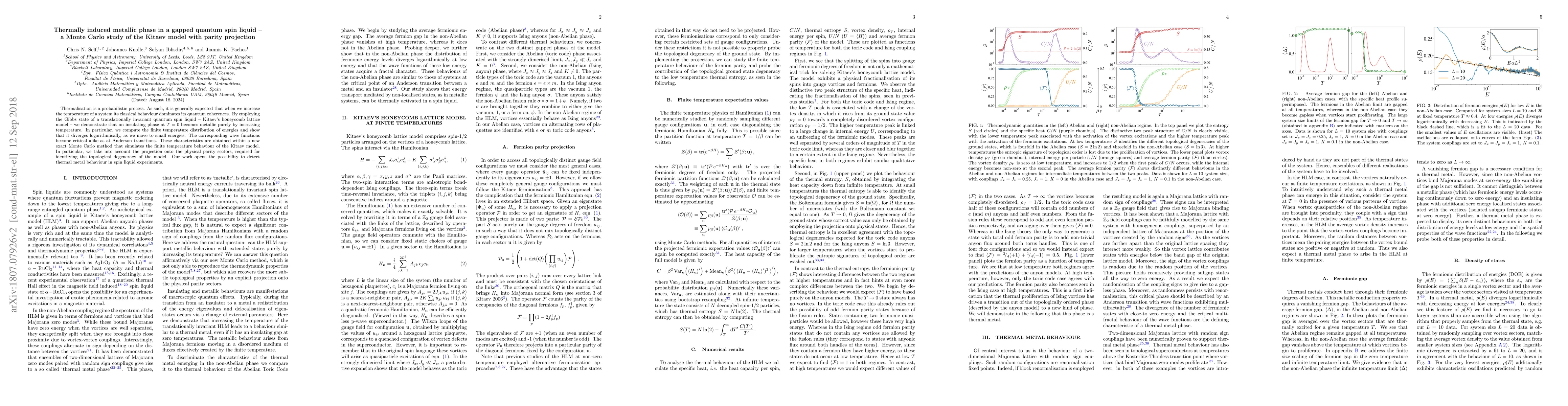 Thermalisation is a probabilistic process. As such, it is generally expected that when we increase the temperature of a system its classical behaviour dominates its quantum coherences. By employing the Gibbs state of a translationally invariant quantum spin liquid - Kitaev's honeycomb lattice model - we demonstrate that an insulating phase at $T=0$ becomes metallic purely by increasing temperature. In particular, we compute the finite temperature distribution of energies and show that it diverges logarithmically, as we move to small energies. The corresponding wave functions become critical alike as at Anderson transitions. These characteristics are obtained within a new exact Monte Carlo method that simulates the finite temperature behaviour of the Kitaev model. In particular, we take into account the projection onto the physical parity sectors, required for identifying the topological degeneracy of the model. Our work opens the possibility to detect thermal metal behaviour in spin liquid experiments.
