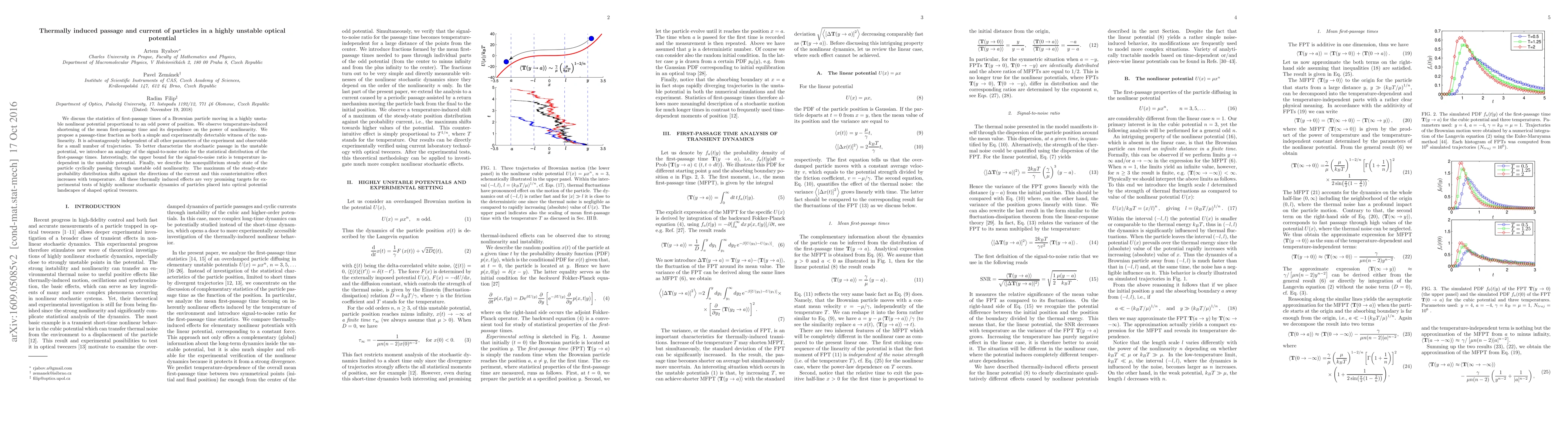 This paper investigates how temperature affects a Brownian particle's movement in an unstable optical potential, finding that it shortens the mean first-passage time and changes the distribution of passage times.
