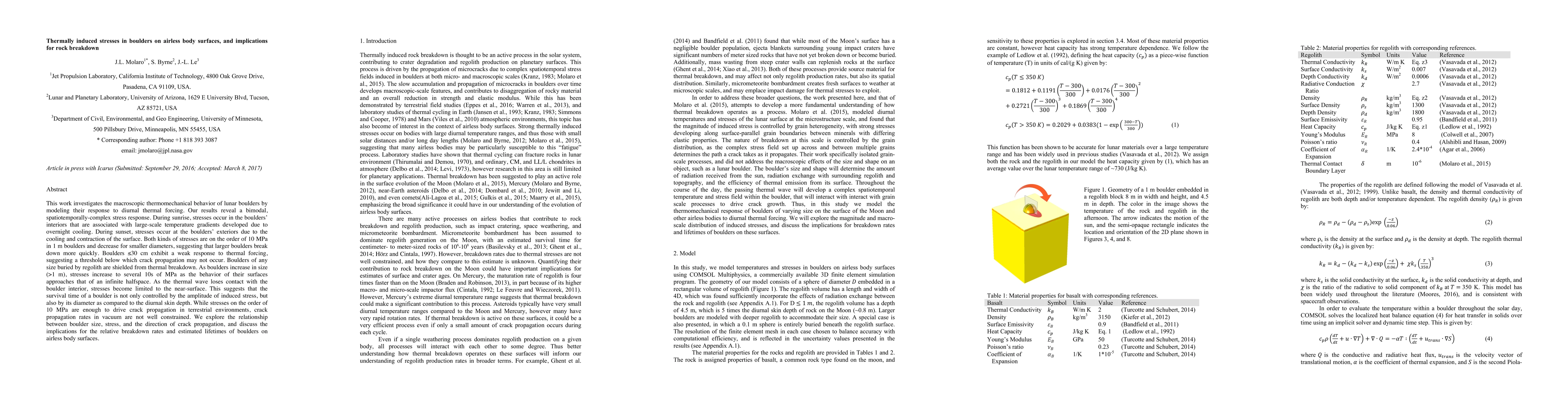 This research explores the implications of thermal stresses on rock breakdown and estimates lifetimes of lunar boulders based on their size and diameter-to-skin-depth ratio.