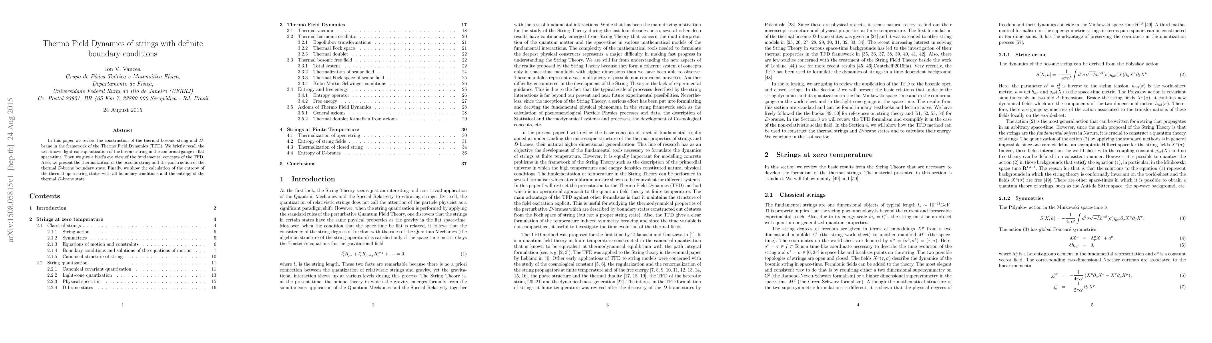 This paper reviews the thermal bosonic string and D-brane construction using Thermo Field Dynamics (TFD), presenting the thermalization process and entropy calculations for both open string states and D-brane states. It also covers the light-cone quantization of the bosonic string and fundamental concepts of TFD.
