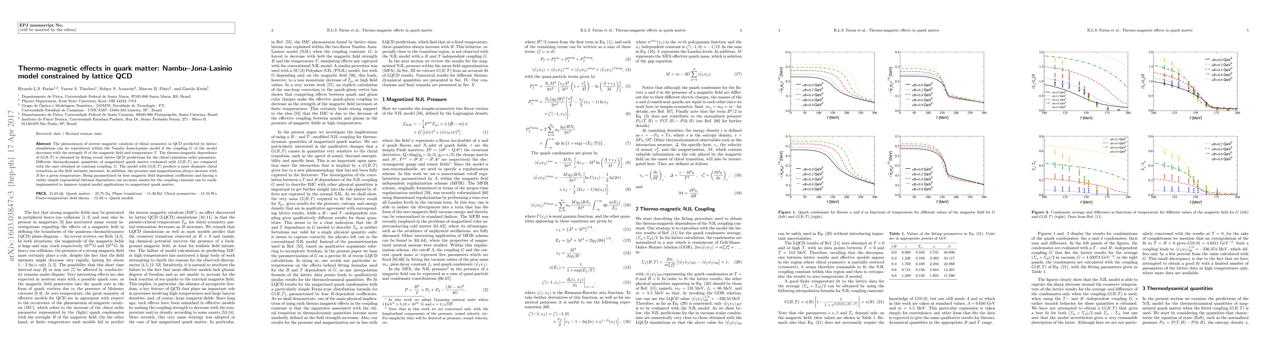 This paper investigates the thermo-magnetic effects in quark matter using the Nambu-Jona-Lasinio model, constrained by lattice QCD data. It finds that the model's coupling constant should decrease with magnetic field strength and temperature to reproduce the inverse magnetic catalysis phenomenon, leading to a more dramatic chiral transition with increasing field intensity.