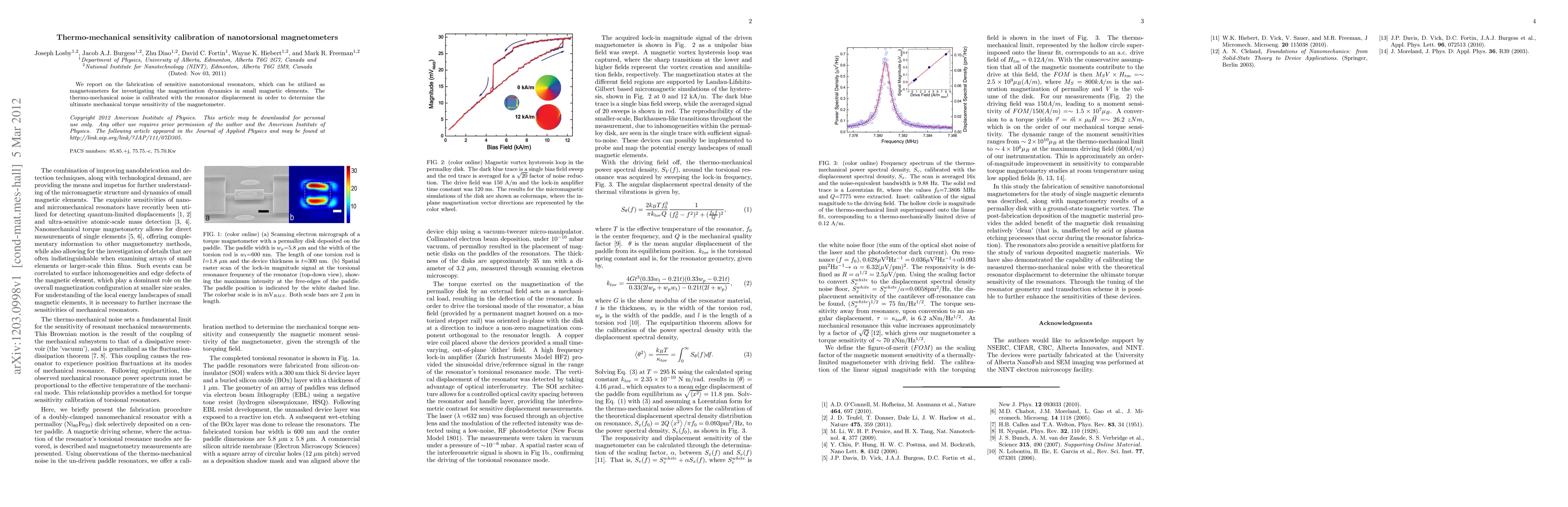 This paper details the fabrication of nanotorsional resonators for use as magnetometers, focusing on calibrating thermo-mechanical noise to achieve high mechanical torque sensitivity for studying magnetization dynamics in small magnetic elements.