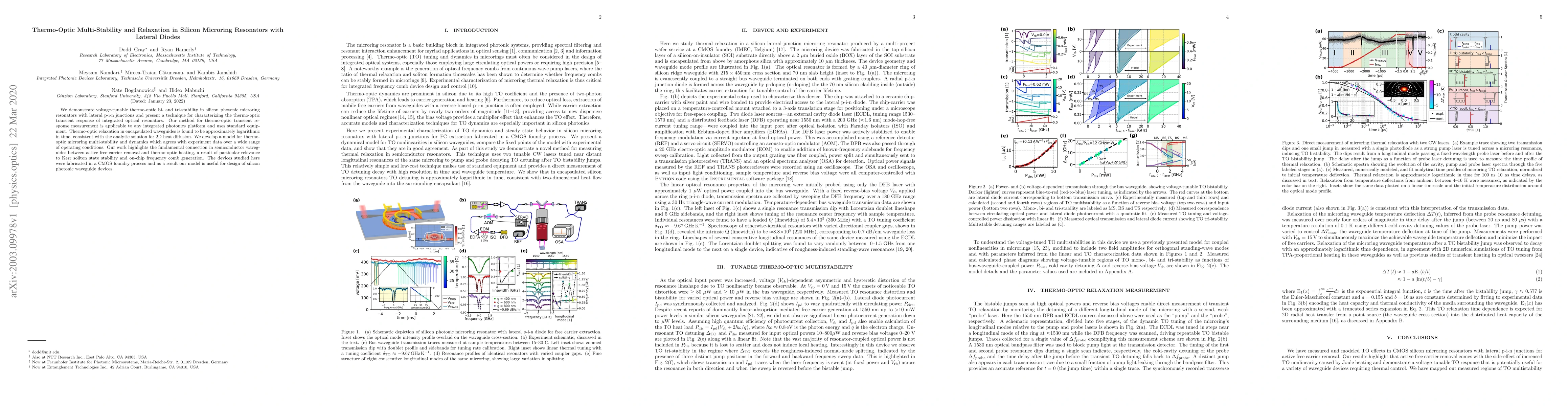This paper demonstrates voltage-tunable thermo-optic bi- and tri-stability in silicon microring resonators using lateral diodes, and presents a method for characterizing their transient thermo-optic response. The study reveals logarithmic relaxation behavior and provides a model for multi-stability dynamics, highlighting the relevance to Kerr soliton stability and on-chip frequency comb generation.
