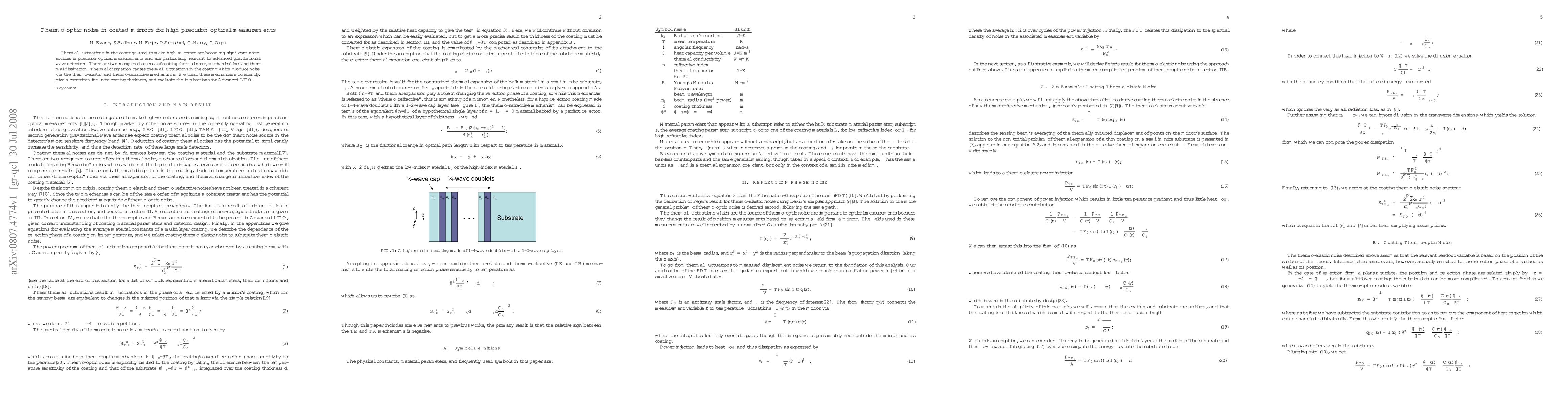 This paper investigates thermo-optic noise from thermal fluctuations in coatings of high-reflectors, identifying mechanical loss and thermal dissipation as key sources. It evaluates thermo-elastic and thermo-refractive noise mechanisms and their impact on precision measurements, particularly in advanced gravitational wave detectors like Advanced LIGO.