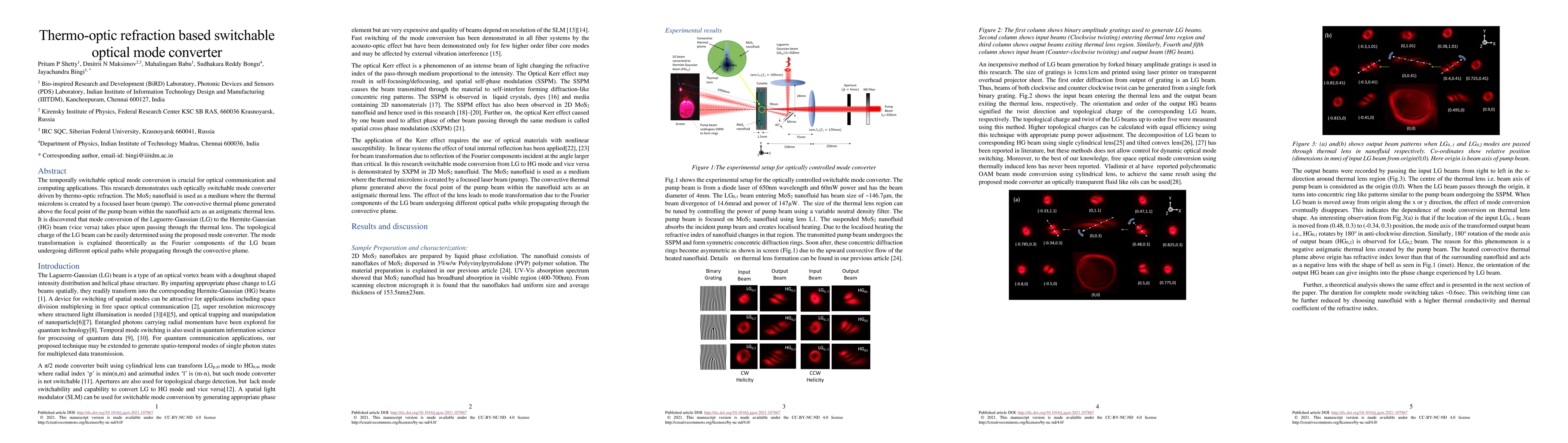 This research presents a thermo-optic refraction-based optical mode converter using MoS2 nanofluid, where a focused laser beam creates a thermal microlens. The mode conversion from Laguerre-Gaussian to Hermite-Gaussian beams is achieved via an astigmatic thermal lens, enabling temporally switchable optical communication applications.