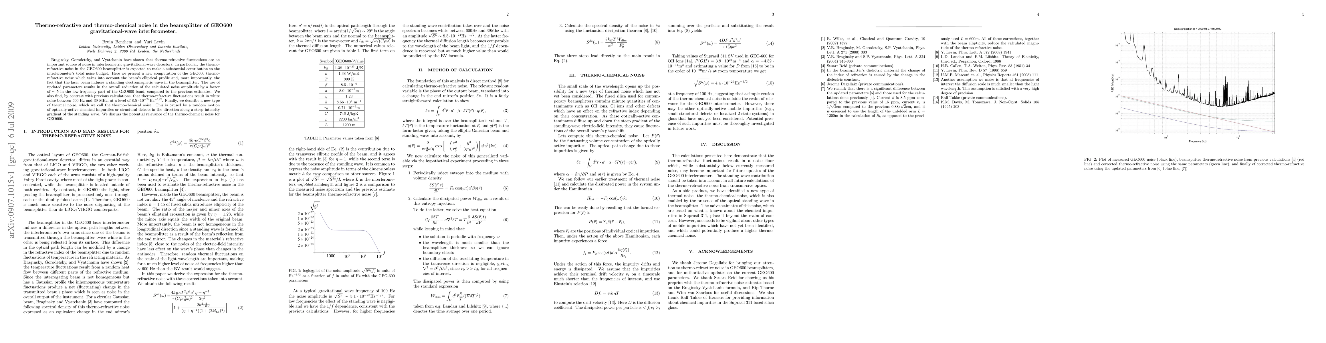 This paper recalculates the thermo-refractive noise in the GEO600 gravitational-wave interferometer, revealing a significant reduction in noise amplitude due to updated parameters and considering the beam's elliptical profile and induced standing electromagnetic wave. It also introduces a new type of thermal noise, termed thermo-chemical noise, caused by the random motion of impurities or defects along the beam's intensity gradient.